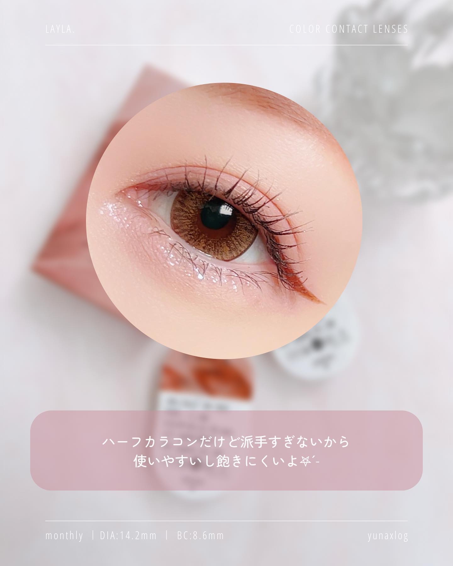 #PR【ブランド名】RoseBerry【商品名】LAYLA.カラー:BitterBrown【特徴】・LAYLA.シリーズの人気No.1カラーのハーフデカ目を演出できちゃうカラコン👀●度数:±0.00〜-10.00●内容量:1箱2枚入り●使用期...