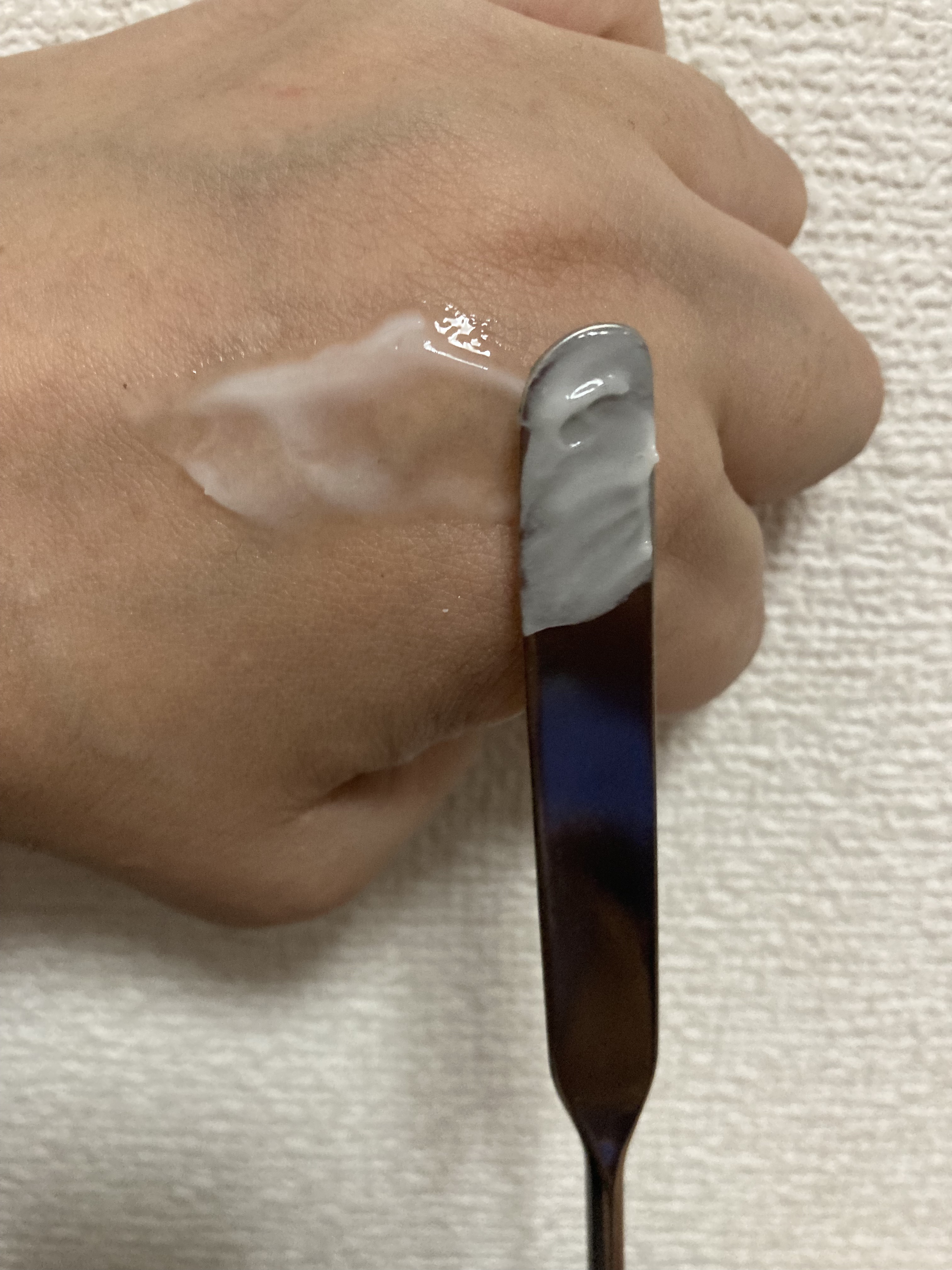 DAISO220円商品。スパチュラ使ってみたくて購入。しっかりした作り。さすが220円!ティッシュで拭くだけでお手入れ簡単。 クッションファンデーションのスウォッチです。先端ですくい取るといい感じ。クッションファンデーションの色味を撮影することができています。 もし私と同じように使いこなせてない方がいたら、試してみてほしいです😊
