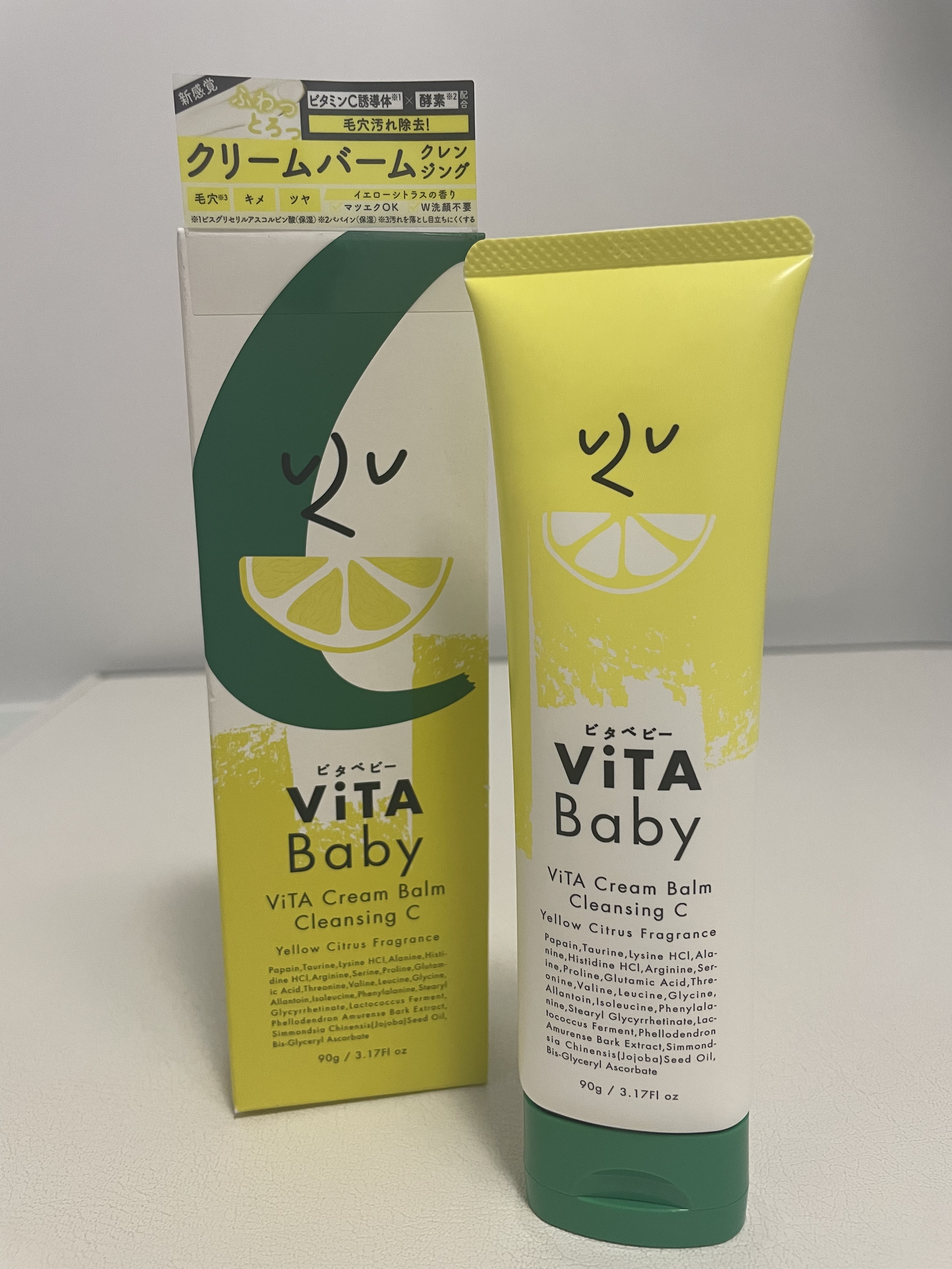 ViTABabyViTAクリームバームクレンジングC黄色の特徴は*1高浸透*2ビタミンC誘導体と酵素で毛穴ケア・すっきりクリア肌*1角質層まで*2ピスグリセルアスコルピン酸(製品の安定剤)香りはイエローシトラス正直言うと、毛穴のざらつきには向...
