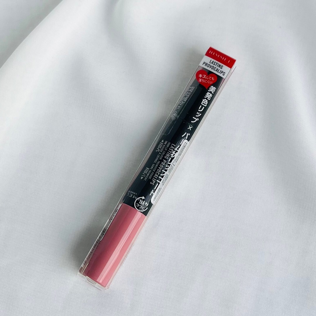 美発色リキッドリップ×バーム状リップコートの2in1。 リキッドリップは発色がよく、単体だとマット、リップコートを塗るとツヤが可愛いです。 発色が良く、落ちにくいリップを探している方におすすめ。