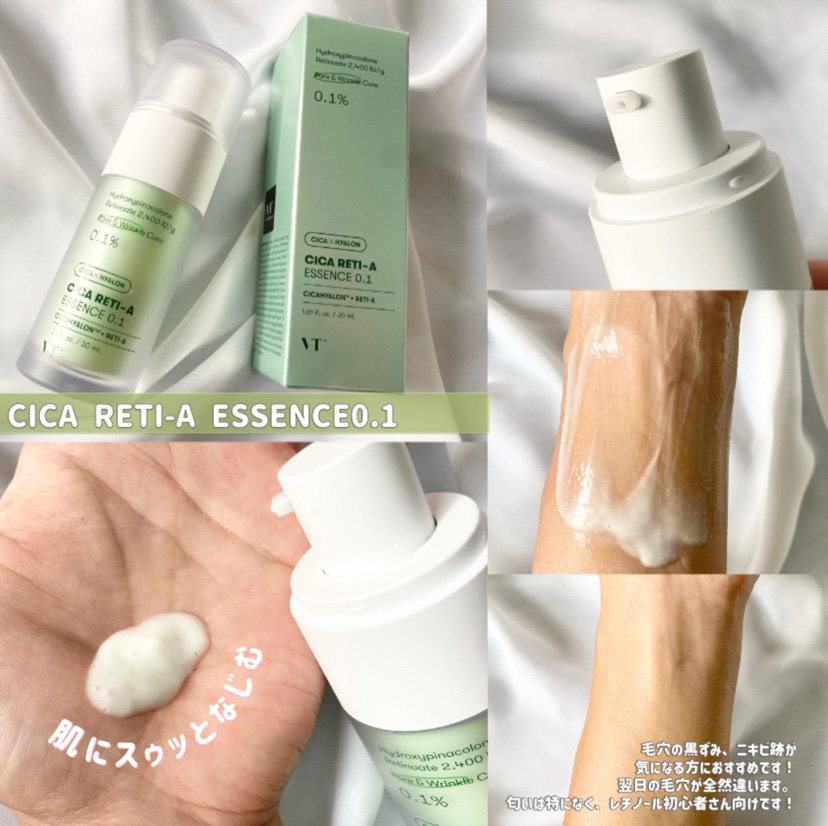 合うレチノール美容液を探してqoo10にて購入。 美容液にしてはコックリしたテクスチャー。脂性肌には向かないかも? 肌への刺激が強いと言われるレチノールクリームより多くレチノールが配合されていますが、同時にLHA成分をプラスすることで肌への負担を軽減し、しっかりと毛穴が目立たない美肌へ導きます。 CICAHYALON™ + RETI-A 1.01 fl. oz. / 30 mL VT°