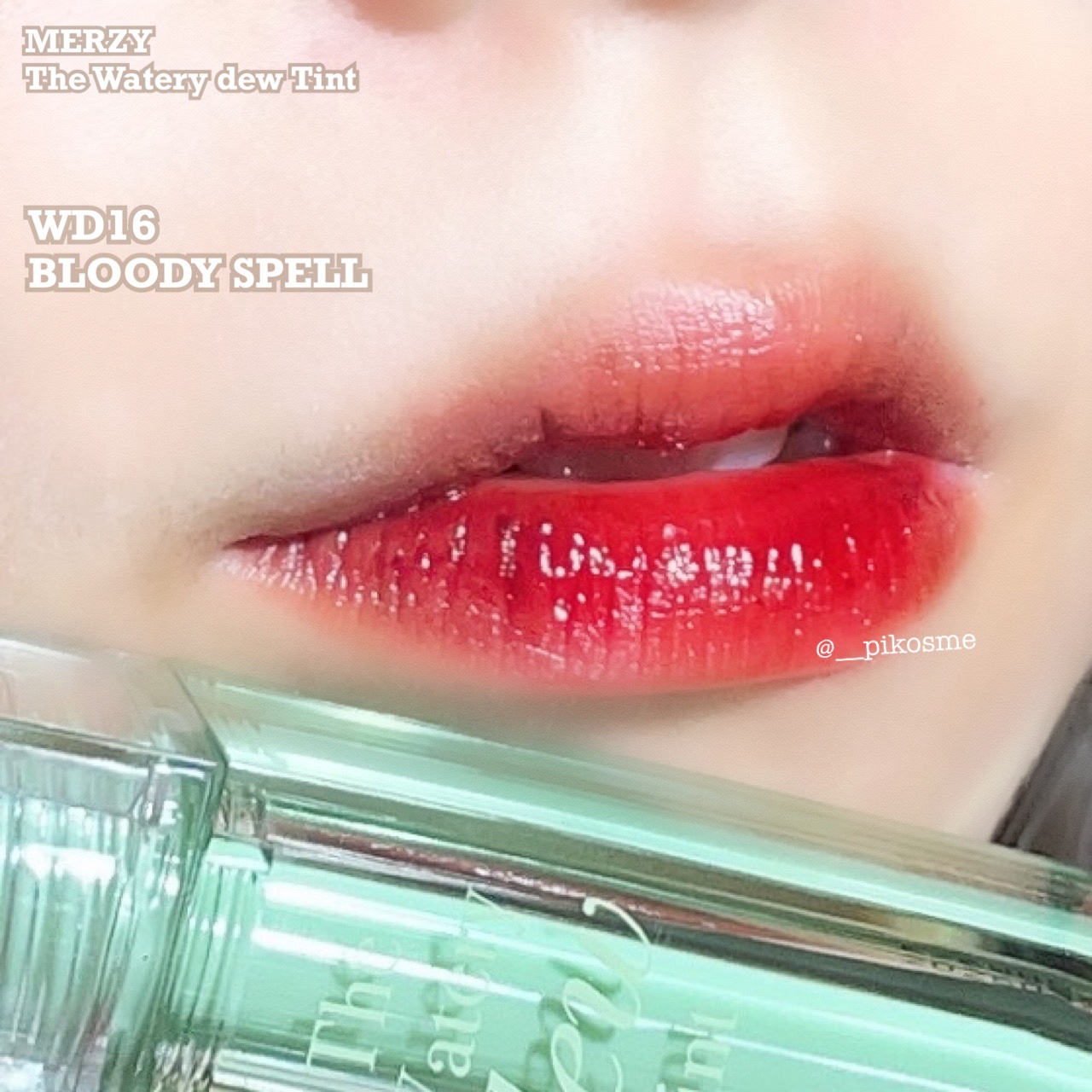 \ディープなダークリップ🖤/♡MERZYTheWaterydewTintWD16BloodySpellクールに仕上がるダークリップ!暗めの赤リップで、わたしの大好きなカラー❤️🔥赤リップだけど、少しブラウンみも感じられるから、馴染みも良く使...