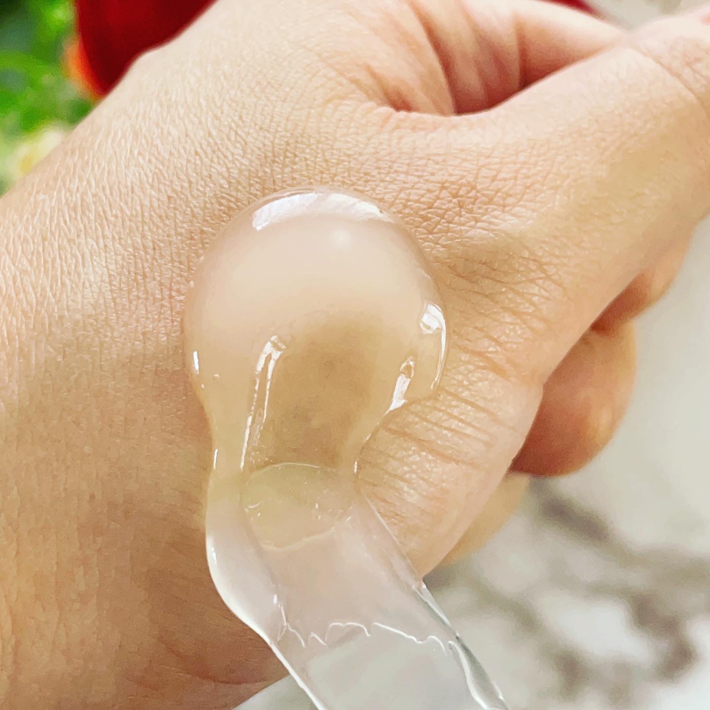 美容液と言うよりは乳液か、クリーム寄りのテクスチャーです。1プッシュ出してみてもこっくりした感じ。手に取って肌になじませてみたところとっても伸びがよいです。べたつくことがなくさらっとしていました!化粧水の後にこの美容液、となっていましたがク...