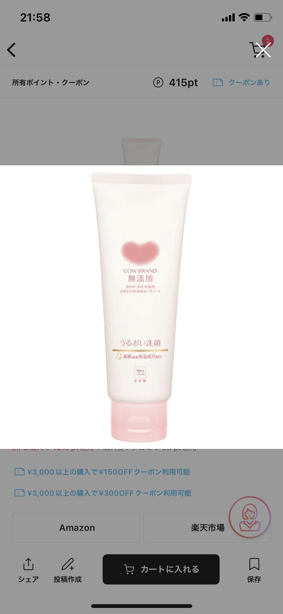 | スキンケアランキング第151位 | 洗い上がりはさっぱりです✨なんとも丁度いい使い心地です。 | 詳細を見る | |