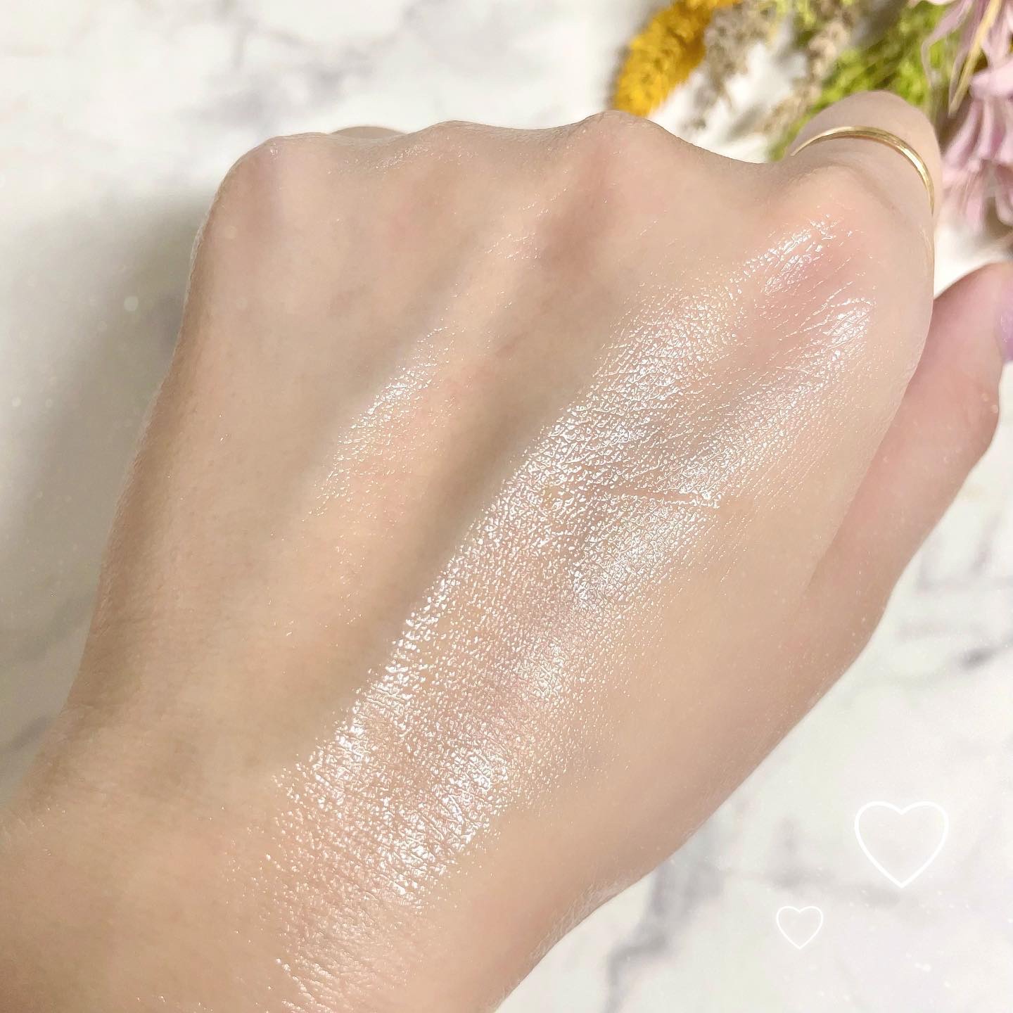 \かわいすぎて事件🤯💘⚡️濡れツヤハイライト/ 上品でキラキラのツヤが美しすぎると発売前から話題でしたね🙌 エナメル+キルティング加工のケースはツルツルぷにぷに♬ 薄型なので持ち運びにも便利!かわいいので無駄に持ち歩こう🙋♀️(?) 細かなピンクパールが温かみのあるツヤを演出してくれます💗 とてもしっとりしたパウダーで粉感がなく、繊細な輝きが長続きします👏 大粒の偏光ラメがギラギラ🤩🥳祭りじゃ〜!といった感じ笑 ホワイトカラーで輝きが目立つので濡れたようなツヤ感が出ます✨ マスクメイクでも頬骨より少し上のCゾーンに入れれば隠れずツヤ感が綺麗に映えます🥰 ラメが大粒で強いのでアイメイクの仕上げに入れても💮 結果万能なのとちょっと奇抜なの♥️ 両方文句なしにかわいかったので満足です🧚♀️笑