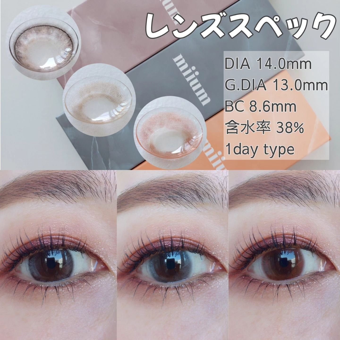 サンセットと言うだけあって夕日のように暖かいウォームカラーな発色! パッと見ちょっと明るすぎないかな?オレンジにならないかな?と思うんだけど、黒目の私にはちょうど良かったです。暗い黒目の私には自然な感じに深いブラウンの瞳にしてくれて、ブラウンメイクとの相性最高💄💖 ミュームのカラコンは着色直径小さめでふんわりフチなものが多いので、普段カラコンつけない私には使いやすくてとても好き😊
