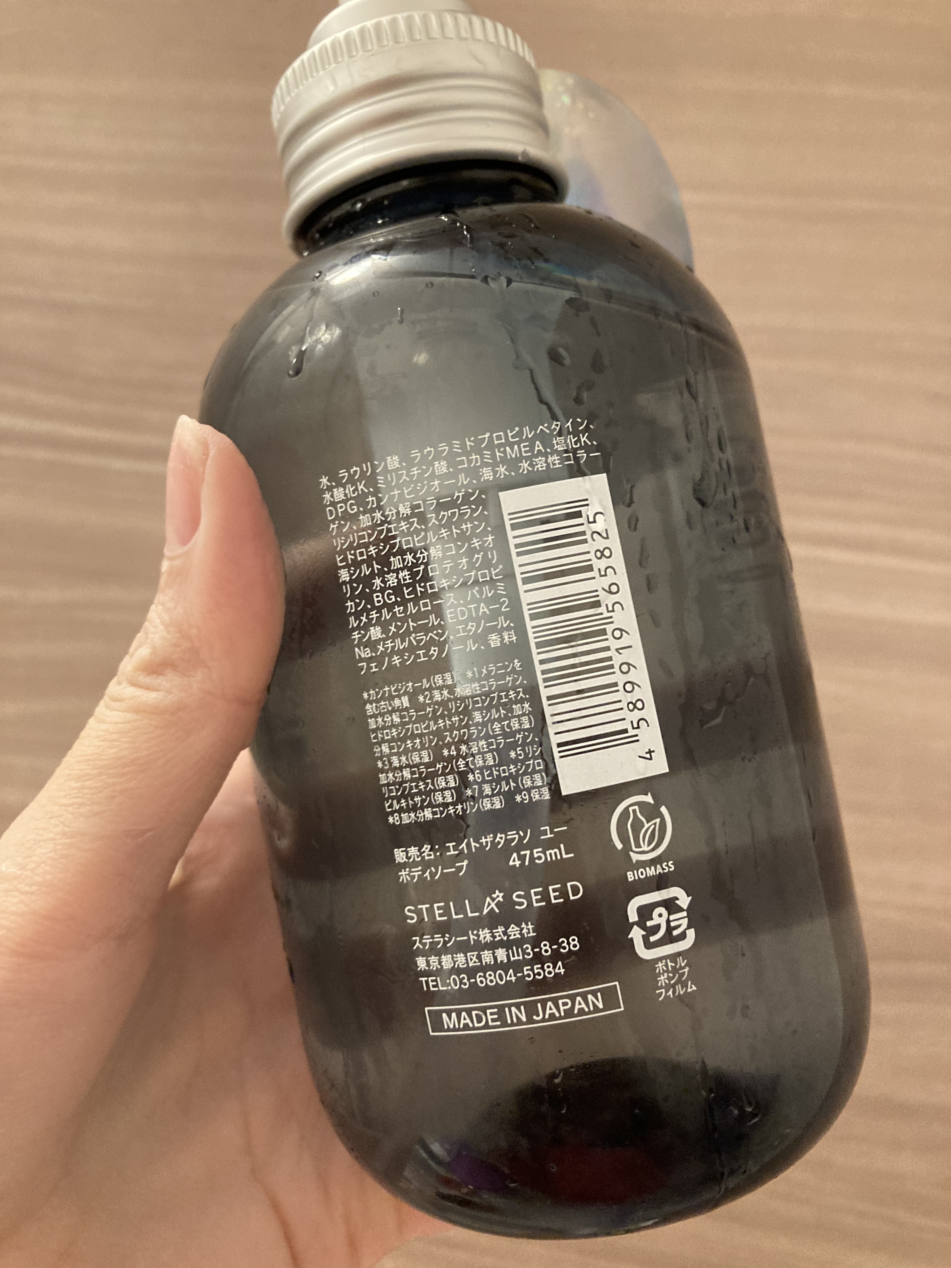 - <本体> 水、ラウリン酸、ラウラミドプロピルベタイン、水酸化K、ミリスチン酸、コカミドMEA、塩化K、DPG、カンナビジオール、海水、水溶性コラーゲン、加水分解コラーゲン、リシリコンブエキス、スクワラン、ヒドロキシプロピルキトサン、海シルト、加水分解コンキオリン、水溶性プロテオグリカン、BG、ヒドロキシプロピルメチルセルロース、パルミチン酸、メントール、EDTA-2Na、メチルパラベン、エタノール、フェノキシエタノール、香料 <つめかえ> 水、ラウリン酸、ラウラミドプロピルベタイン、水酸化K、ミリスチン酸、コカミドMEA、塩化K、DPG、カンナビジオール、海水、水溶性コラーゲン、加水分解コラーゲン、リシリコンブエキス、スクワラン、ヒドロキシプロピルキトサン、海シルト、加水分解コンキオリン、水溶性プロテオグリカン、BG、ヒドロキシプロピルメチルセルロース、パルミチン酸、メントール、EDTA-2Na、メチルパラベン、エタノール、フェノキシエタノール、香料