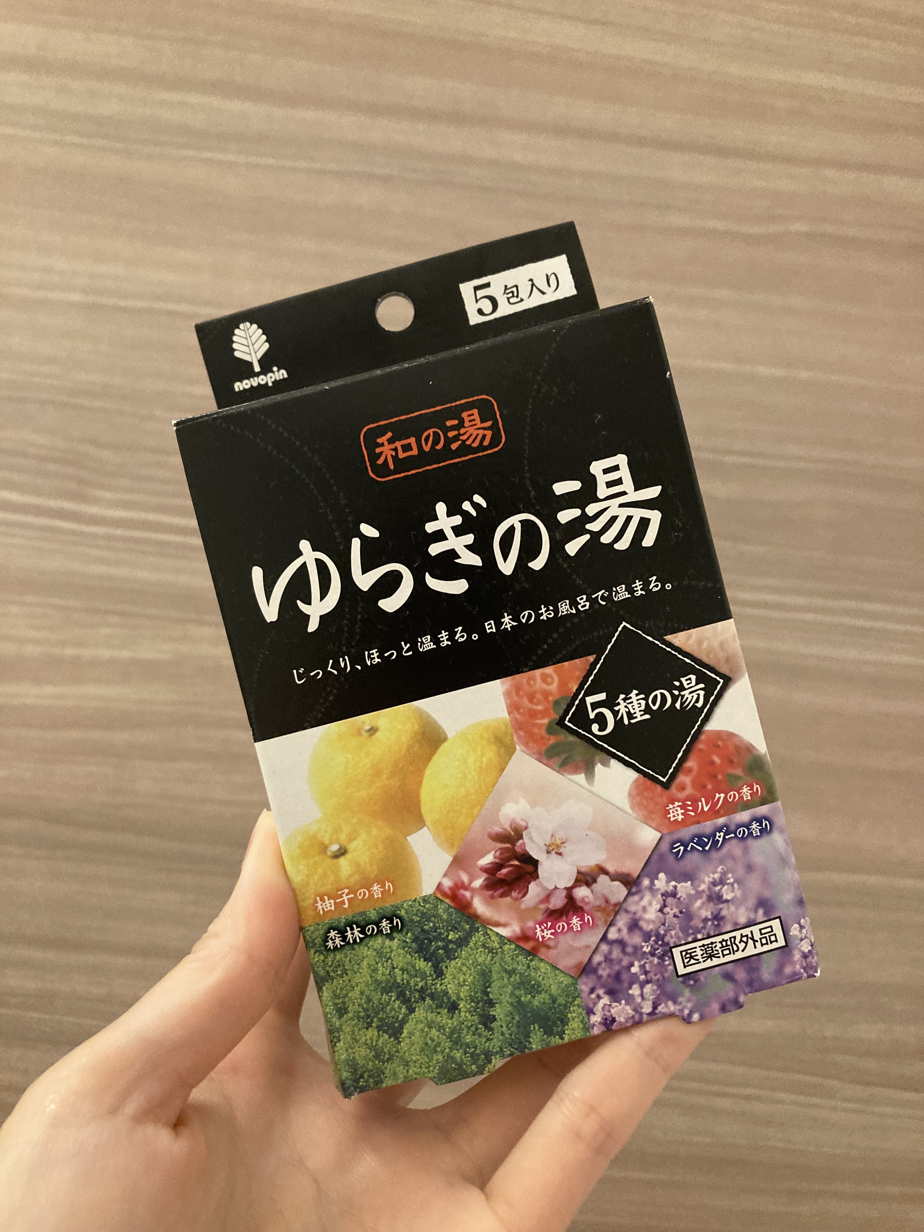 - 5種の香りの薬用入浴剤。(森林の香り・ラベンダーの香り・苺ミルクの香り・柚子の香り・桜の香り) <効能> 疲労回復、冷え性、うちみ、肩のこり、荒れ性、くじき、腰痛、あせも、痔、神経痛、しっしん、リウマチ、しもやけ