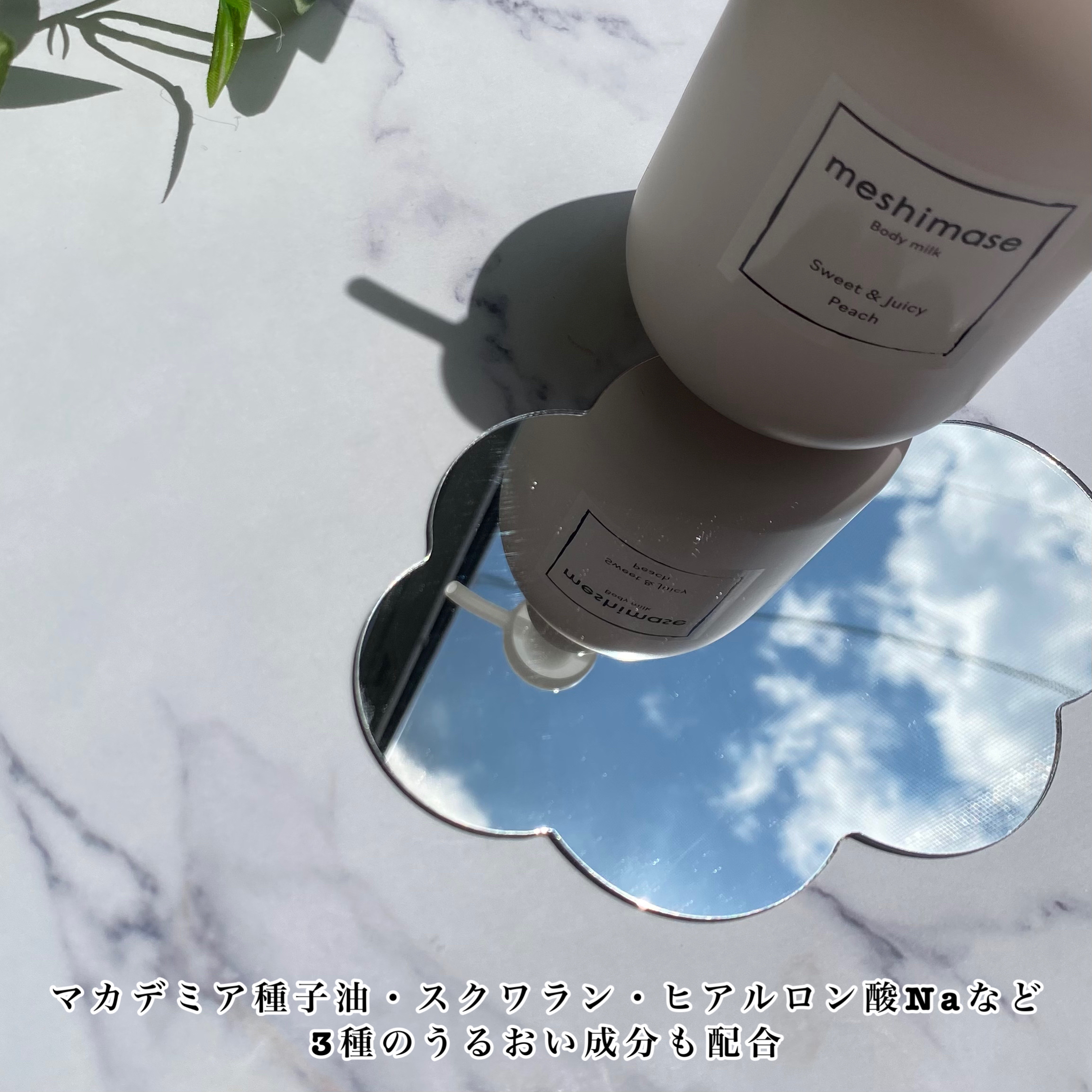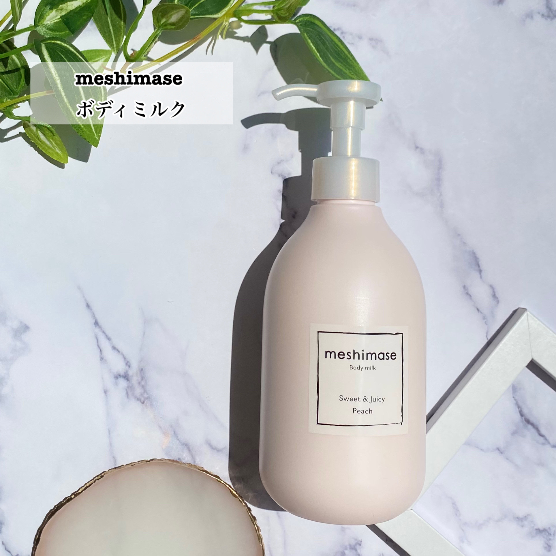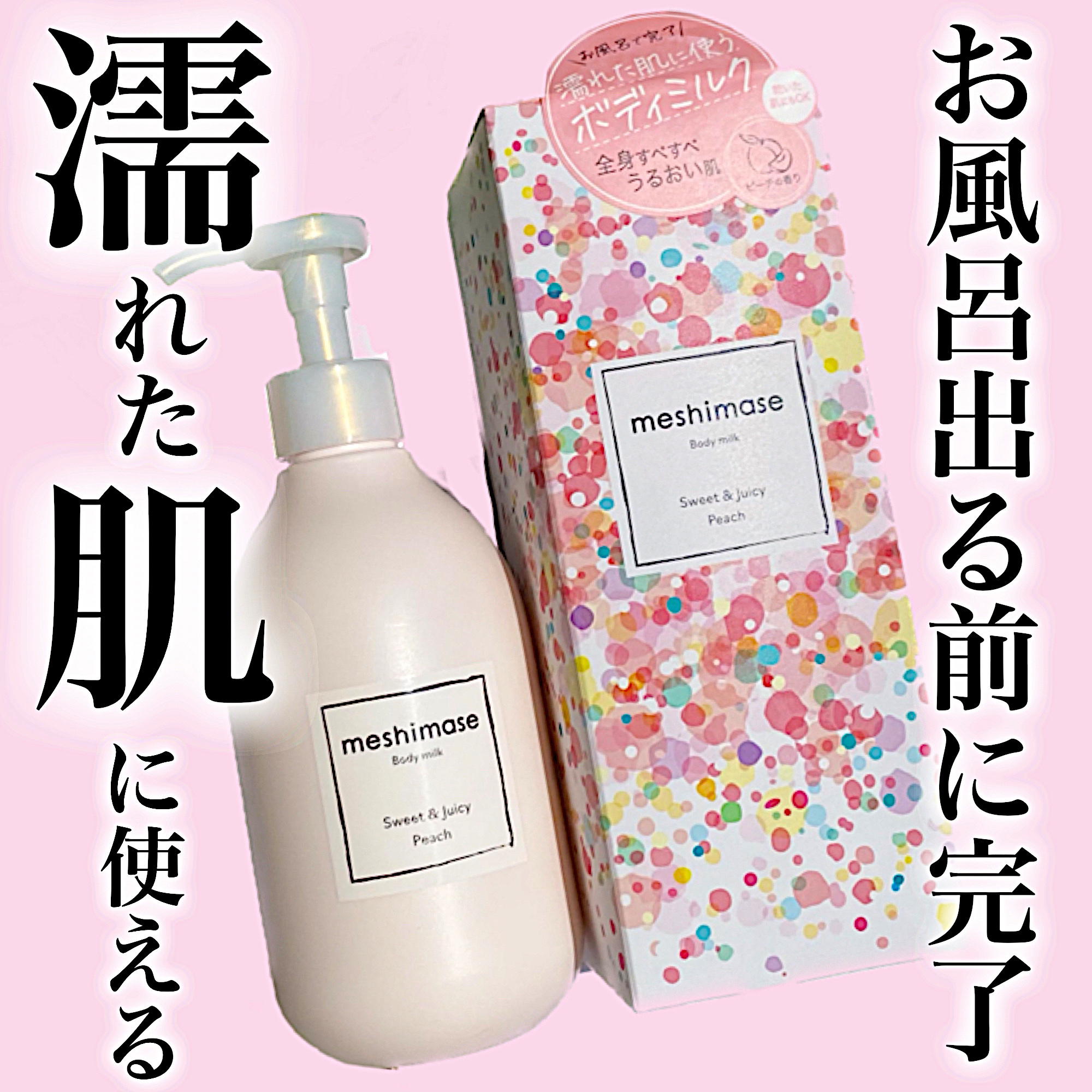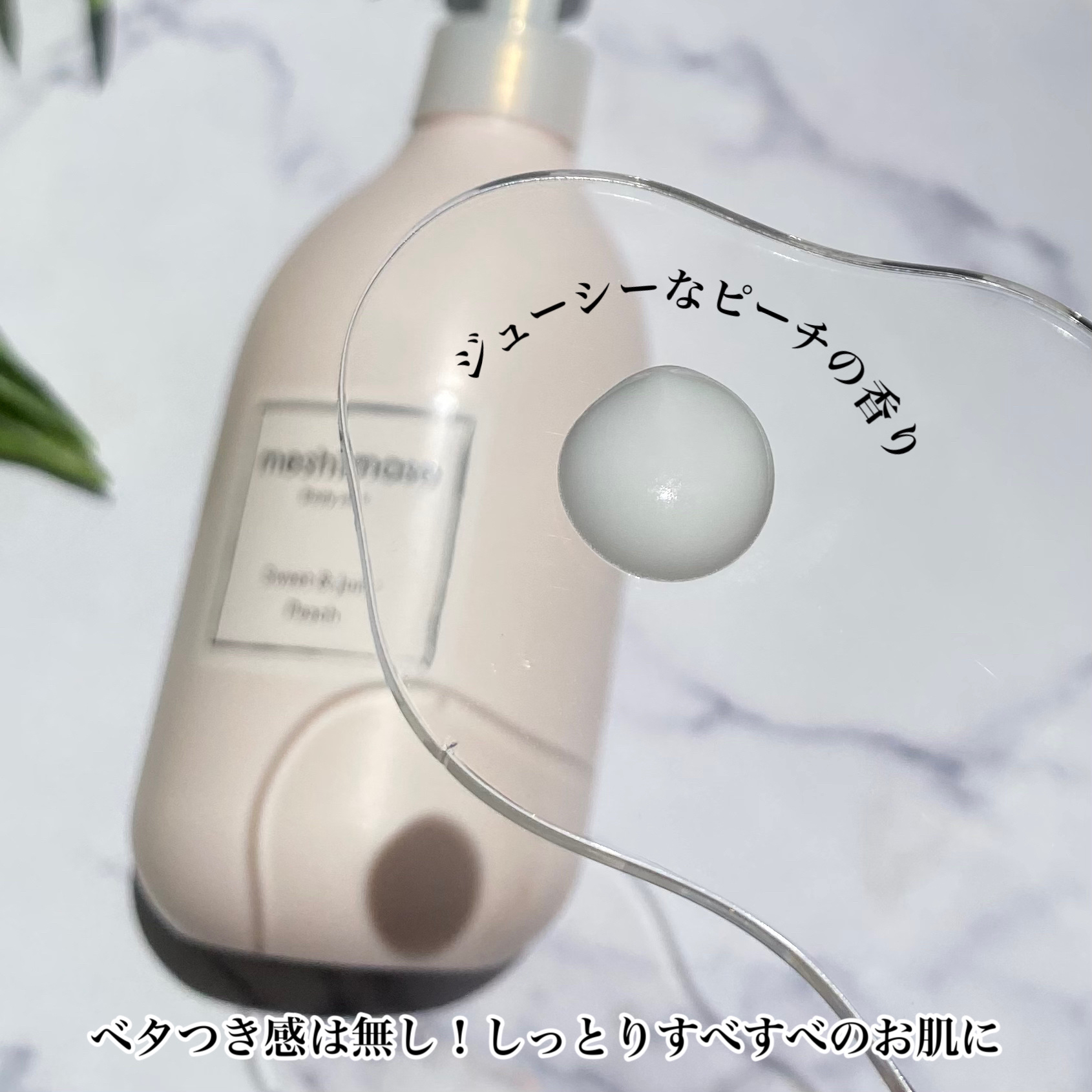 お風呂上がりもいい香り🍐 ボディケアの「meshimase」シリーズ。どれもジューシーないい香りとかわいいデザインがステキ。 ラ・フランスのフルーティーさとフローラルの華やかさが合わさることで、より果実感引き立ついい香り𖧷 ⁺. 絶対いい香りだと思っていたけど、やっぱり好きだわ〜 ミルクはスーッと伸びてくれてしっとりとした使い心地だよ♡