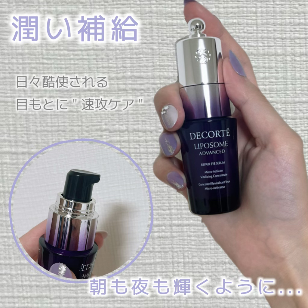 ◾️DECORTÉリポソームアドバンストリペアアイセラム乾燥によるくすみ、キメの乱れ、ハリのなさ、乾燥小ジワなど、疲れた目もとにアプローチしてくれる!デリケートな目もとにすっとなじむ、オイルフリーのみずみずしいエッセンスベースプッシュ式で、片...