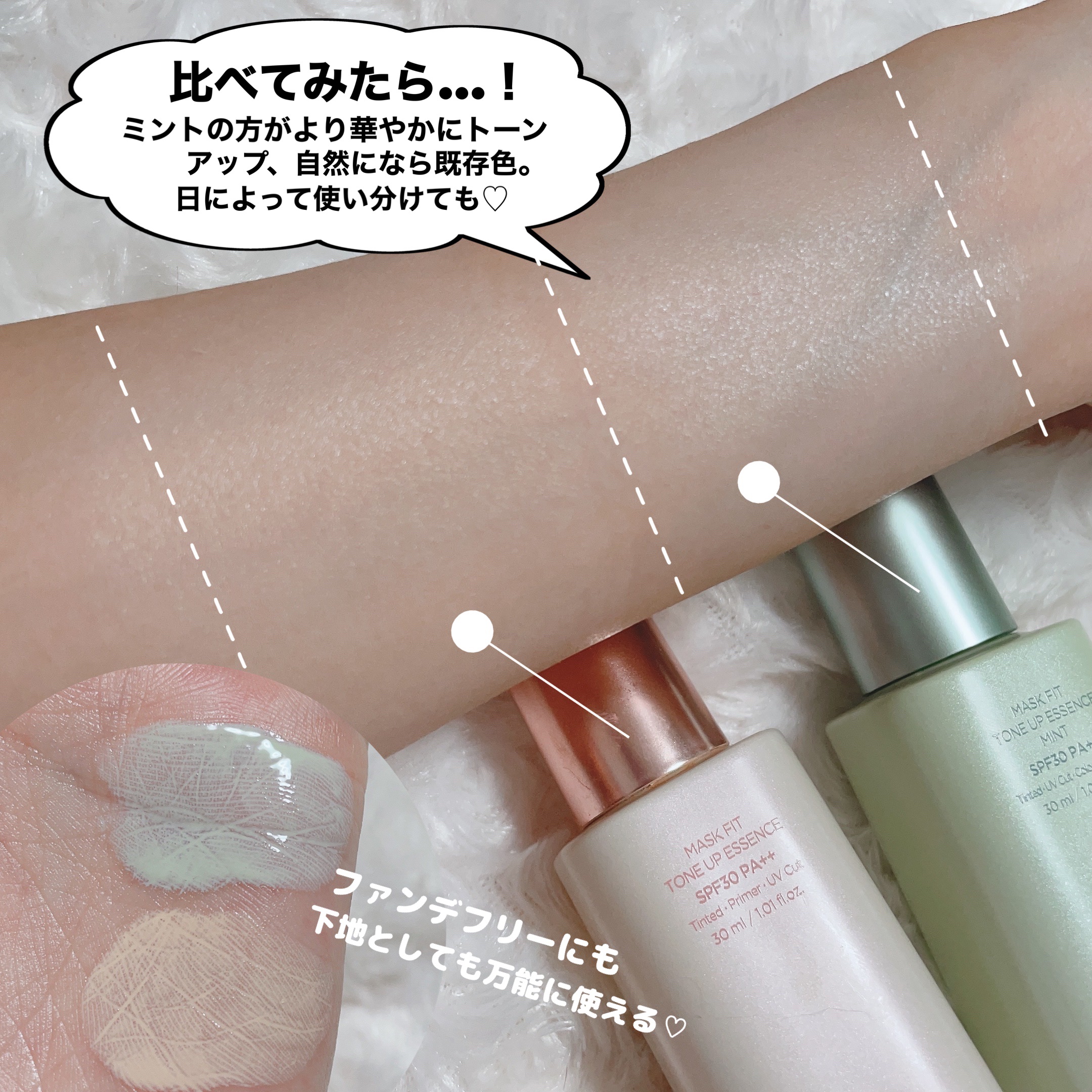 〘マスクフィットトーンアップエッセンス〙新色コーラルカラーの下地。*⌒⌒⌒⌒⌒⌒⌒⌒⌒⌒*⌒⌒⌒⌒⌒⌒⌒⌒⌒⌒*ファンデ前の下地としてはもちろんノーファンデの下地のみでも使えるトーンアップ&くすみ補正力と見聞きし楽しみにしていたこちら。白浮き...