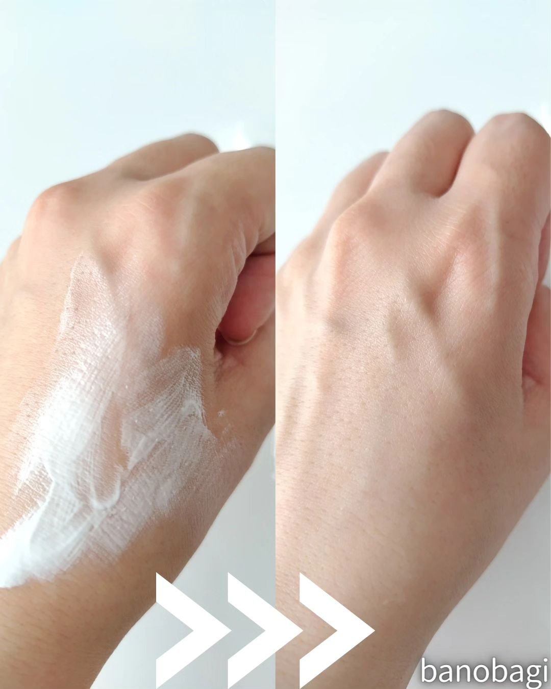肌にのせるとすぐにスッと馴染みます。馴染むとベタつかずすぐサラサラになる!