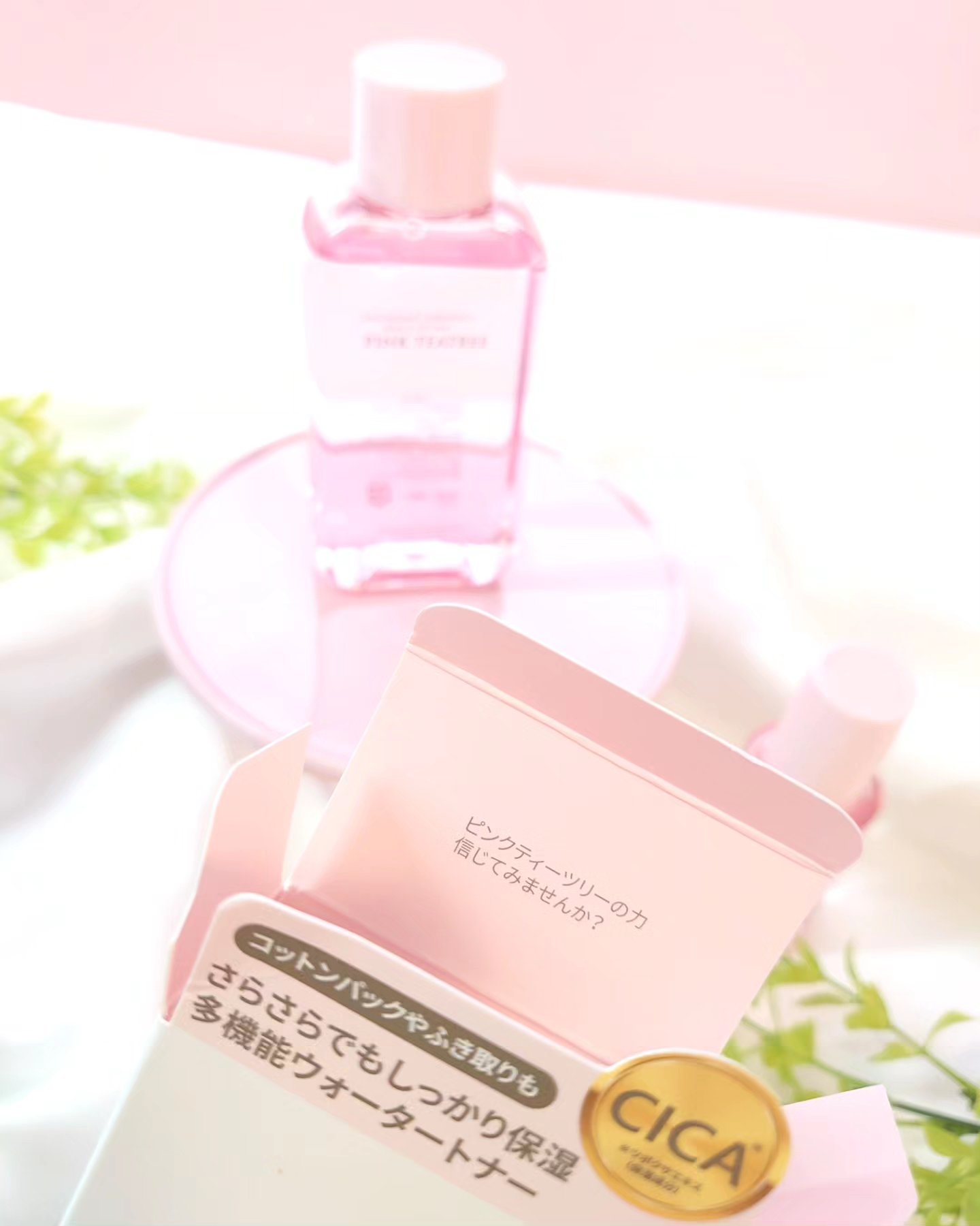 ティーツリーやツボクサ成分(CICA)が配合されているトナー.′.′ ピンク色でふんわりお花みたいなかわいらしい香りです🌷˒˒* このピンク色は自然成分[ビタミンB12]の本来の色で、ビタミンB12は荒れた肌に水分と活力を与え肌環境を整えてくれるんだって✨✨ セラミドNPやアラントインなどの成分が入っていて、保湿と肌荒れ予防を同時にケアしたい人に◎