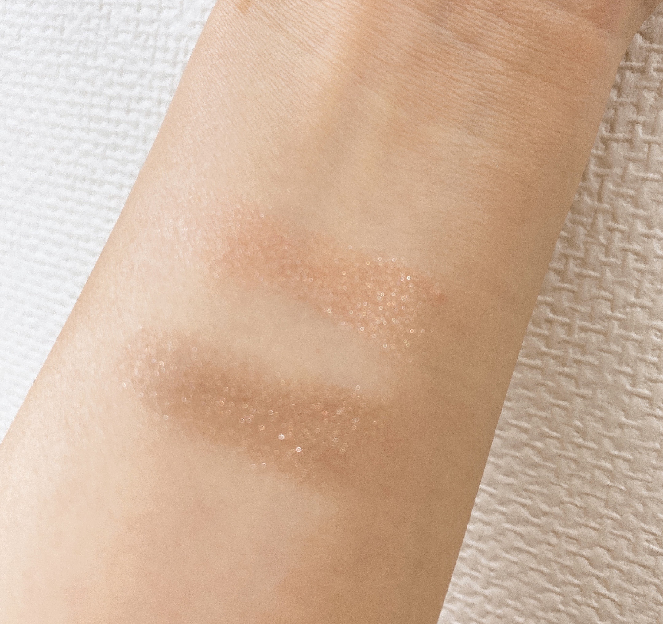 両パレットの上2色は、購入前に画像で見た時にはかなり似てるのかなと思ったけど現物を見ると結構違う! ツヤツヤの質感はどちらも似た印象だけど、ヘイズィセンシュアリティのほうが、ヌード ディップよりも黄味が少なくグレージュかかってる感じ。 そしてヘイズィセンシュアリティ、やっぱりピンクが絶妙で可愛い〜!上品にもカジュアルにもハマる! ヌードディップは、やっぱり顔面に立体感が出る〜! もし万が一、手持ちのアイシャドウパレットを3つしか残せないって言われたらヌードディップとヘイズィセンシュアリティをそのなかに入れてしまう気がします。