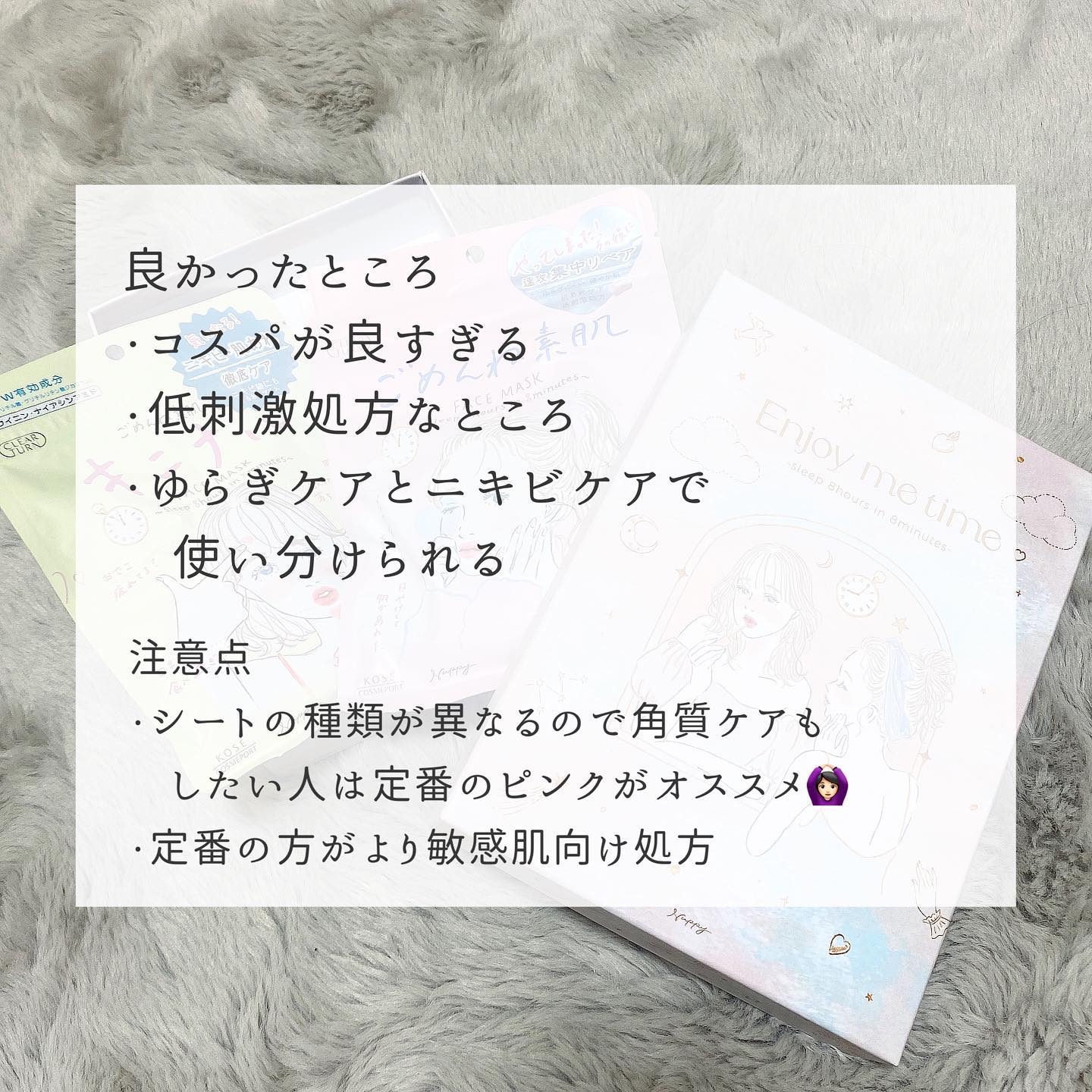 ニキビ・肌あれを徹底ケア ニキビのもとになりやすいオイル不使用のみずみずしい美容液。 密着力も高く、剥がれにくい! シートマスク自体は切り込みなどは最低限で顔に貼りやすかったし密着力もありますが 即効性はなくまだニキビはあります 残念ですが期待を上回ることはなかったです🥲