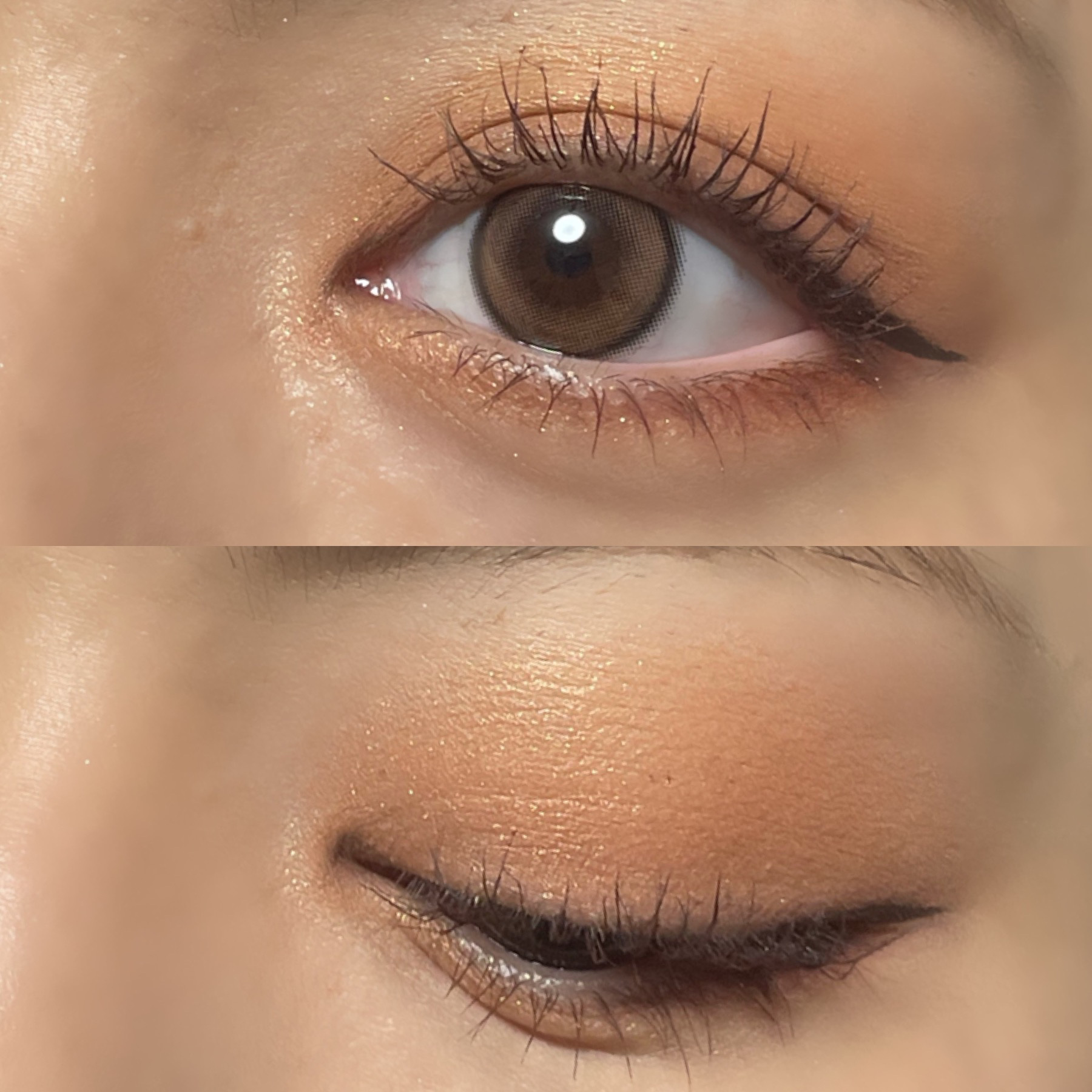 全体的に淡めです! イエベ向きな黄色みのあるブラウン系🤎 シマーなラメが可愛すぎる!! 密着度の高いラメでポンと乗せるだけで キラッキラ✨✨ 粉飛びもしないです! 発色はいいですが淡いので 初心者さんでも使いやすい!!!