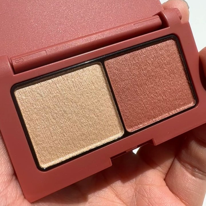 アルモニーアイズは2色で仕上げるのでテクニック要らずで、誰でも綺麗なグラデーションが出来るのが魅力🥺✨ ブラウンベースのカラーが豊富🙆♀️締め色がないので程よい抜け感が出ます🙌 キラキラしすぎない上品なパール感が本当に使いやすいですよ❤️ 3850円という価格も嬉しい✨ 左側のカラーを二重幅にのせてから、右側のカラーをアイホール全体にのせるだけ😊