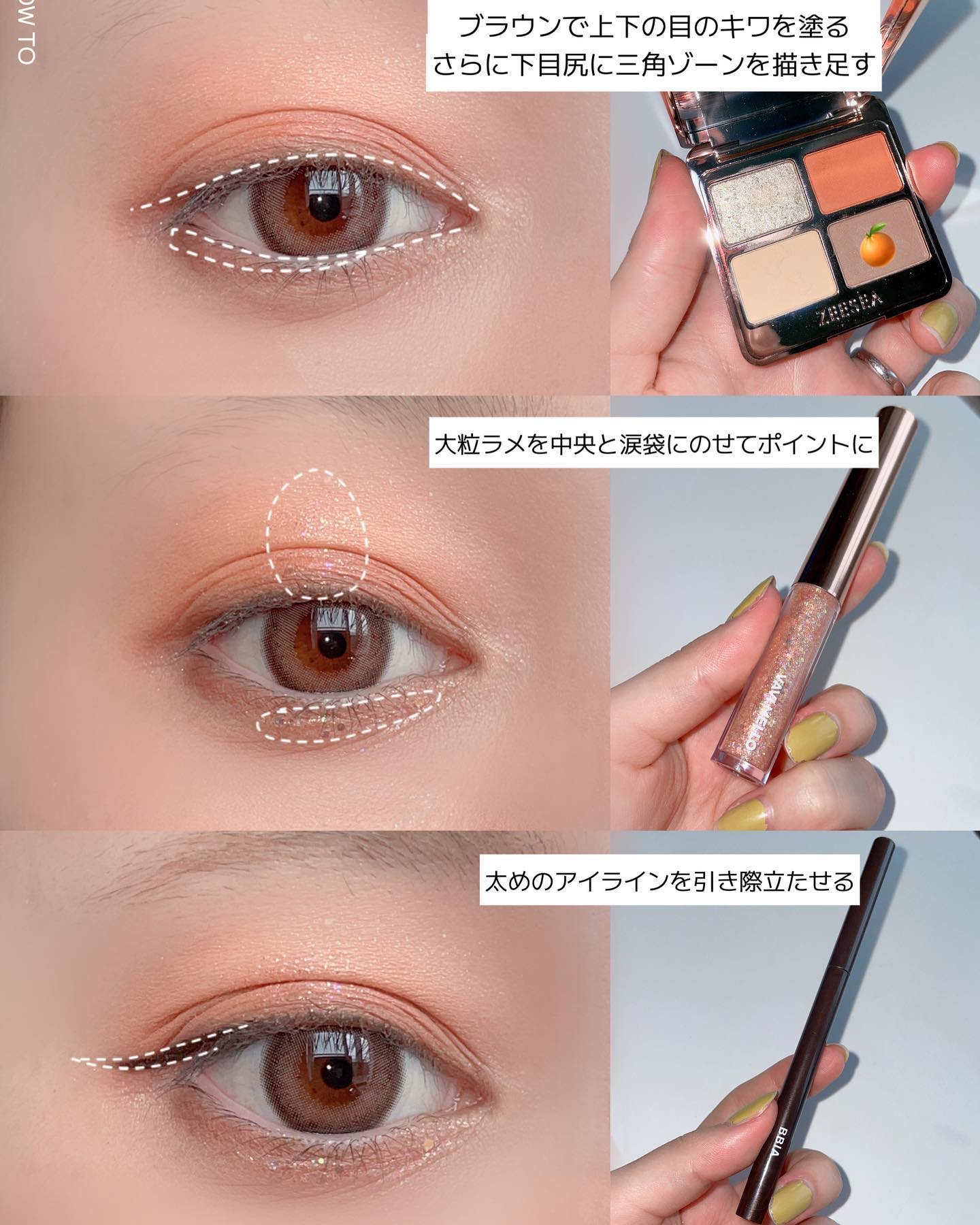 正しく隠せればナチュラルにメイクも完成します👏🏻👏🏻 青クマ···▸�血行不良が原因でうっ血により目の下が青っぽくみえるクマ オレンジのコンシーラーを使います! 茶クマ···▸�色素沈着が原因でどんよりとくすんで見えてしまうクマ オレンジコンシーラーを使います! たるみ、ゴルゴ線···▸�目の下の筋力の低下、コラーゲン不足によってたるんでしまう。 明るめのコンシーラー細い線を描きぼかす方法です!