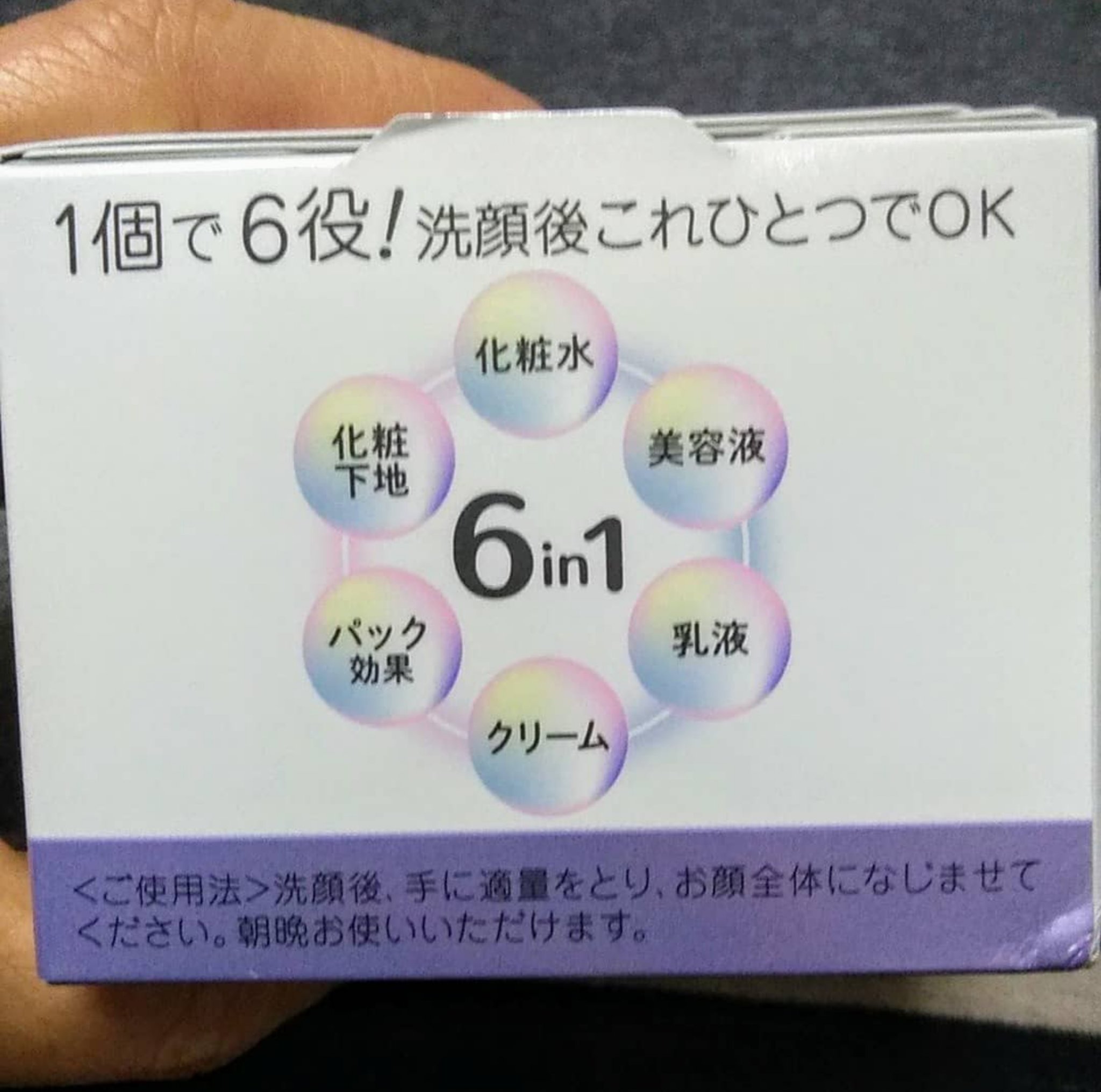- 1つで6役(化粧水、美容液、乳液、クリーム、パック効果、化粧下地)のオールインワンジェルです。お肌の上でとろけるようになじみ、みずみずしく変化するジェルで、お肌の奥までぐんぐん浸透*します。形状記憶ジェルが、お肌に膜を張ってうるおいを閉じ込め、なめらかなふっくらもち肌に導きます。パウダーファンデーションともピタッと密着するので、夜のお手入れはもちろん、朝の時短ケアにもおすすめです。 *角層まで