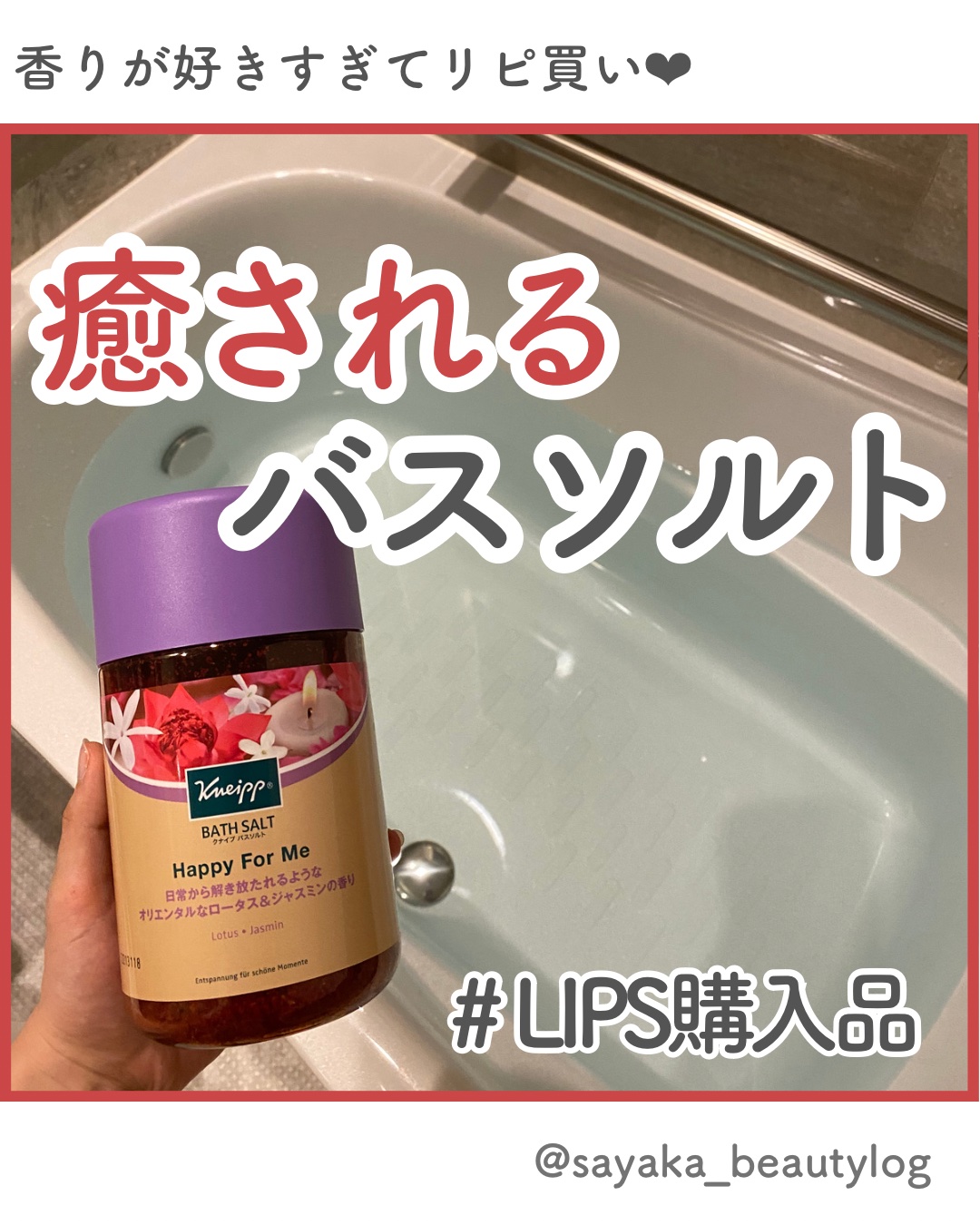 クナイプバスソルトハッピーフォーミーロータス&ジャスミンの香り癒されたい時にクナイプの入浴剤を選んで使う事が多いです。今日は寂しいお別れの出来事があったので、この香りを選んでみました。ムスクのような少し甘い感じのローズ🌹の香りとジャスミンが程...
