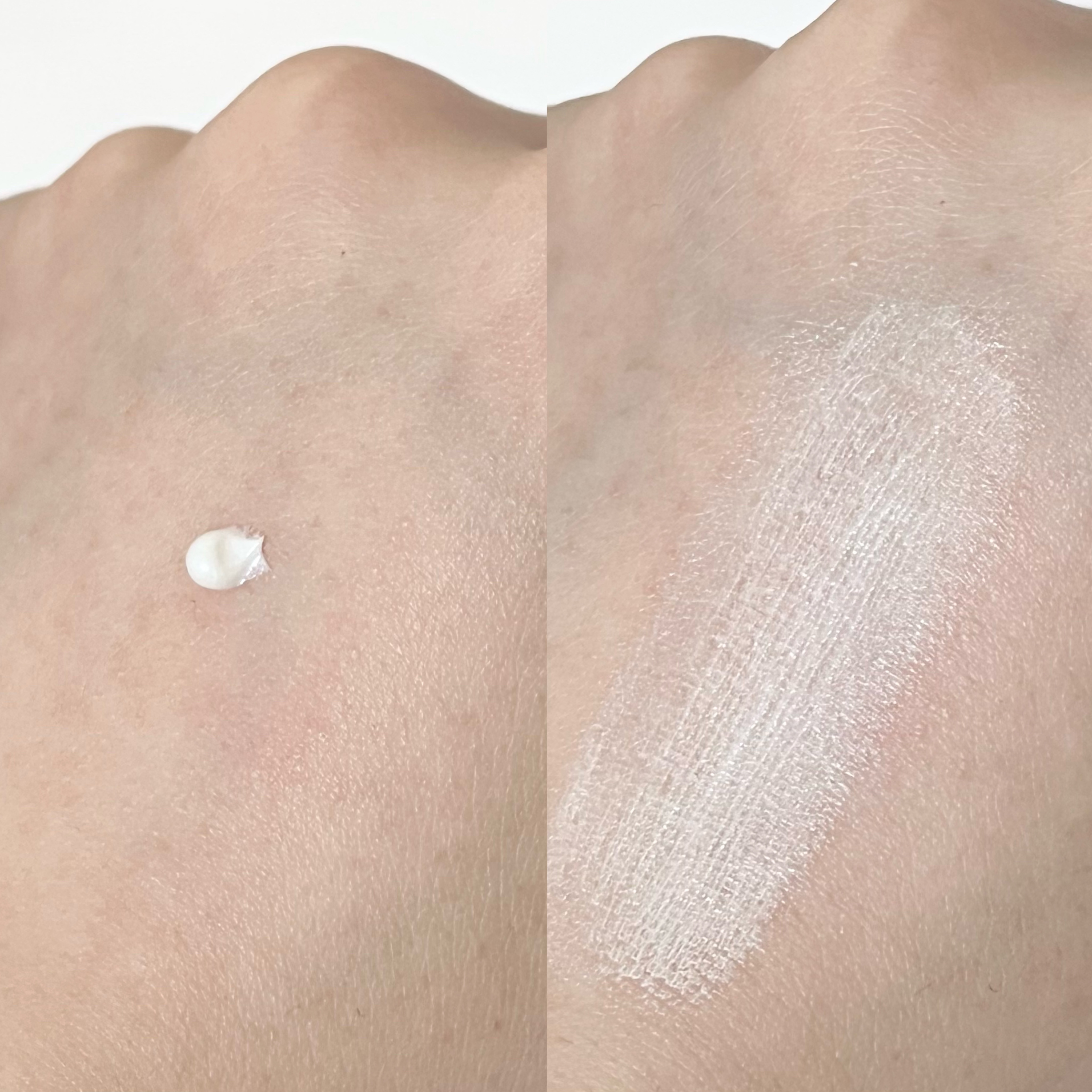 トーンアップパールが、しっかり入っているので、スッピンに塗ると、目の下だけ、テカテカに見えなくも無いですが、少量で済むし、コスパ良くて良いです。 敏感肌対応、低刺激処方な所もよくて、痒くなったりせずに使えています。