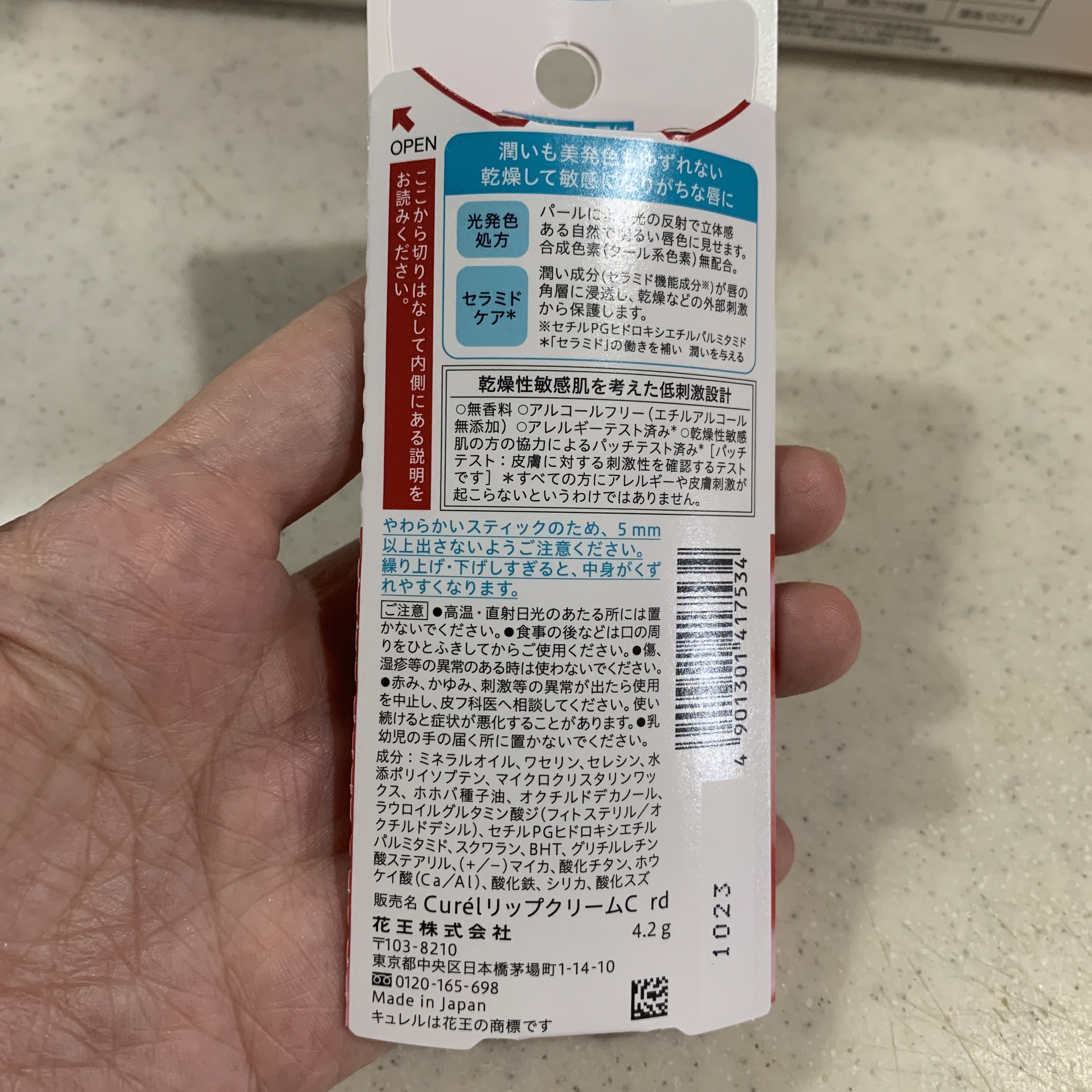 - 【敏感肌用】 潤いも美発色もゆずれない、乾燥して敏感になりがちな唇に。 光を味方に、美発色するカラーリップクリーム。 ●光発色処方 パールによる光の反射で立体感ある自然で明るい唇色に見せる 合成色素(タール系色素)無配合 ●セラミドケア*1 潤い成分(セラミド機能成分*2)が唇の角層に浸透し、乾燥などの外部刺激から保護 ●乾燥性敏感肌を考えた低刺激設計 *1 「セラミド」の働きを補い 潤いを与える *2 セチルPGヒドロキシエチルパルミタミド 商品に関するお問い合わせ 受付時間9:00~17:00(土曜・日曜・祝日除く) *製品の誤飲・誤食など緊急の場合は、受付時間外でもお電話ください キュレル:0120-165-698