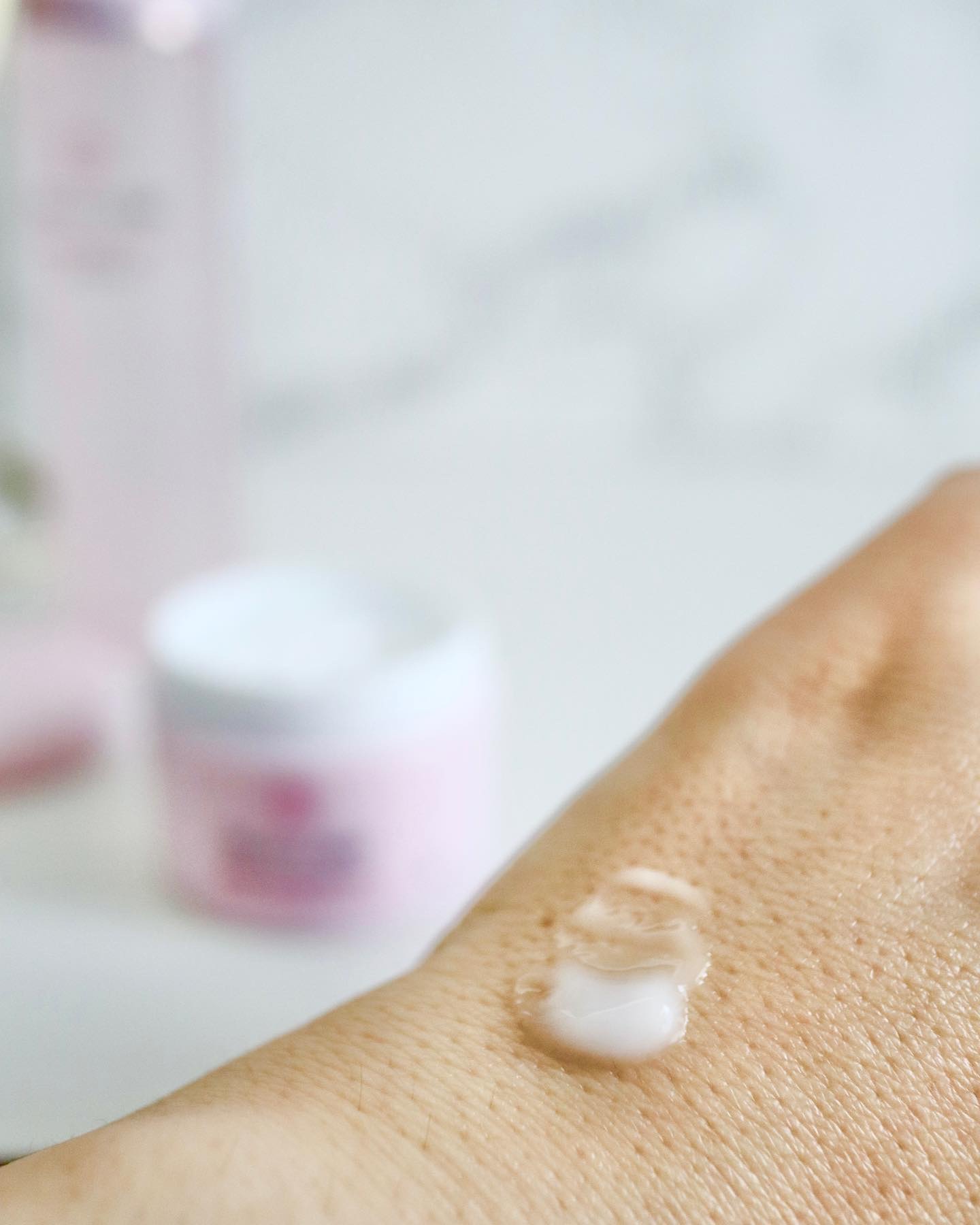 贅沢に美容成分を配合しているクリームは思ったより軽く、みずみずしく、素肌によくのびます。べとつきはしないかな。 プッシュしてエアレスボトルから新鮮なクリームが出てくるから量も調節しやすい🙆♀️ クリームはジェルのようにみずみずしいよ。少し高級化粧品によくあるような独特の香りがします。 ピンク色のエアーレスのボトル プッシュするとクリームが出てきます。