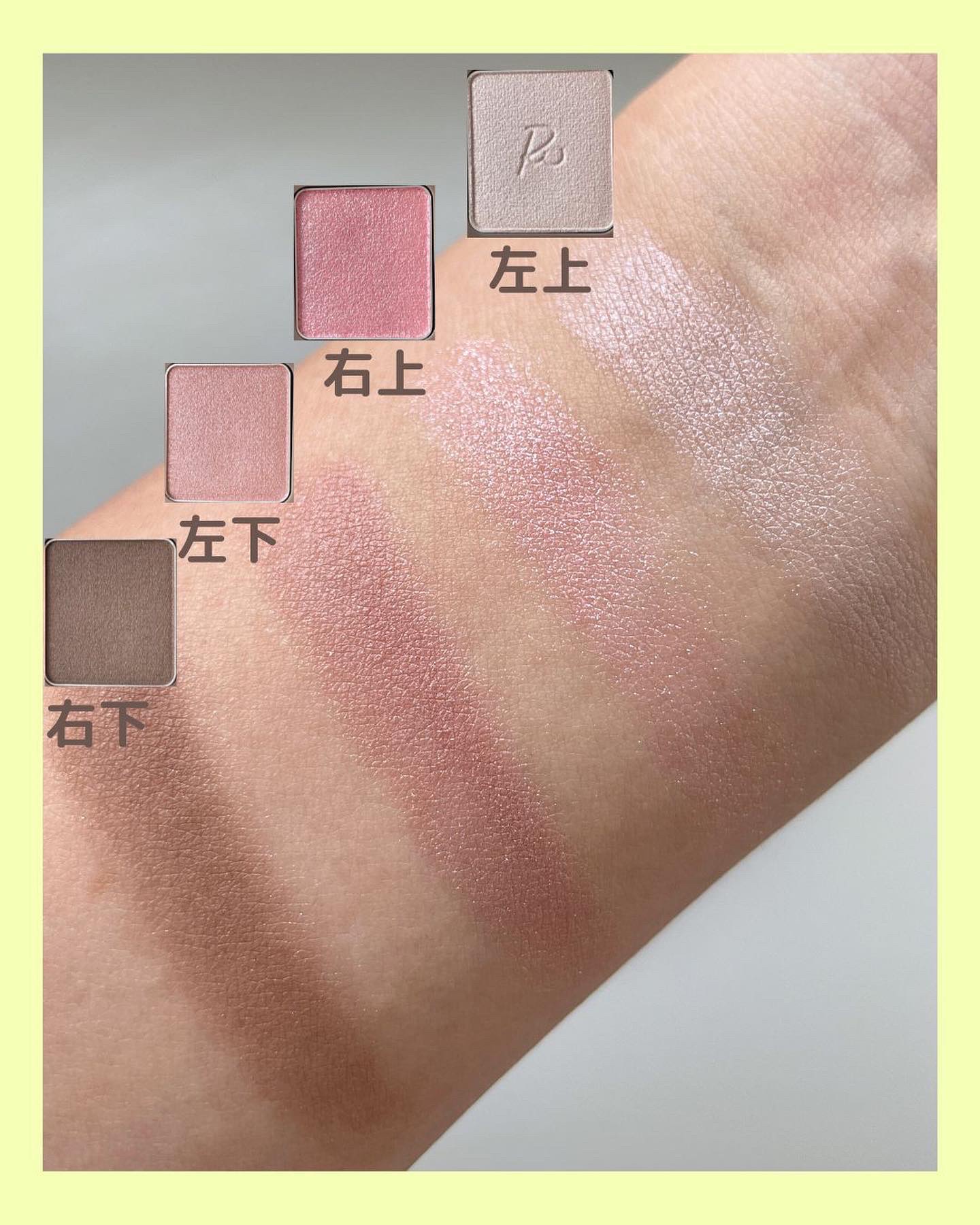 この金額で涙袋が何パターンも作れるなんて、すごい👍 粉質しっとり。マット、パールはカラーはほんのりな発色で重ねて調整するのが◎。 影色はオレンジ寄りの赤みを帯びたブラウン。この中では1番発色良いです。