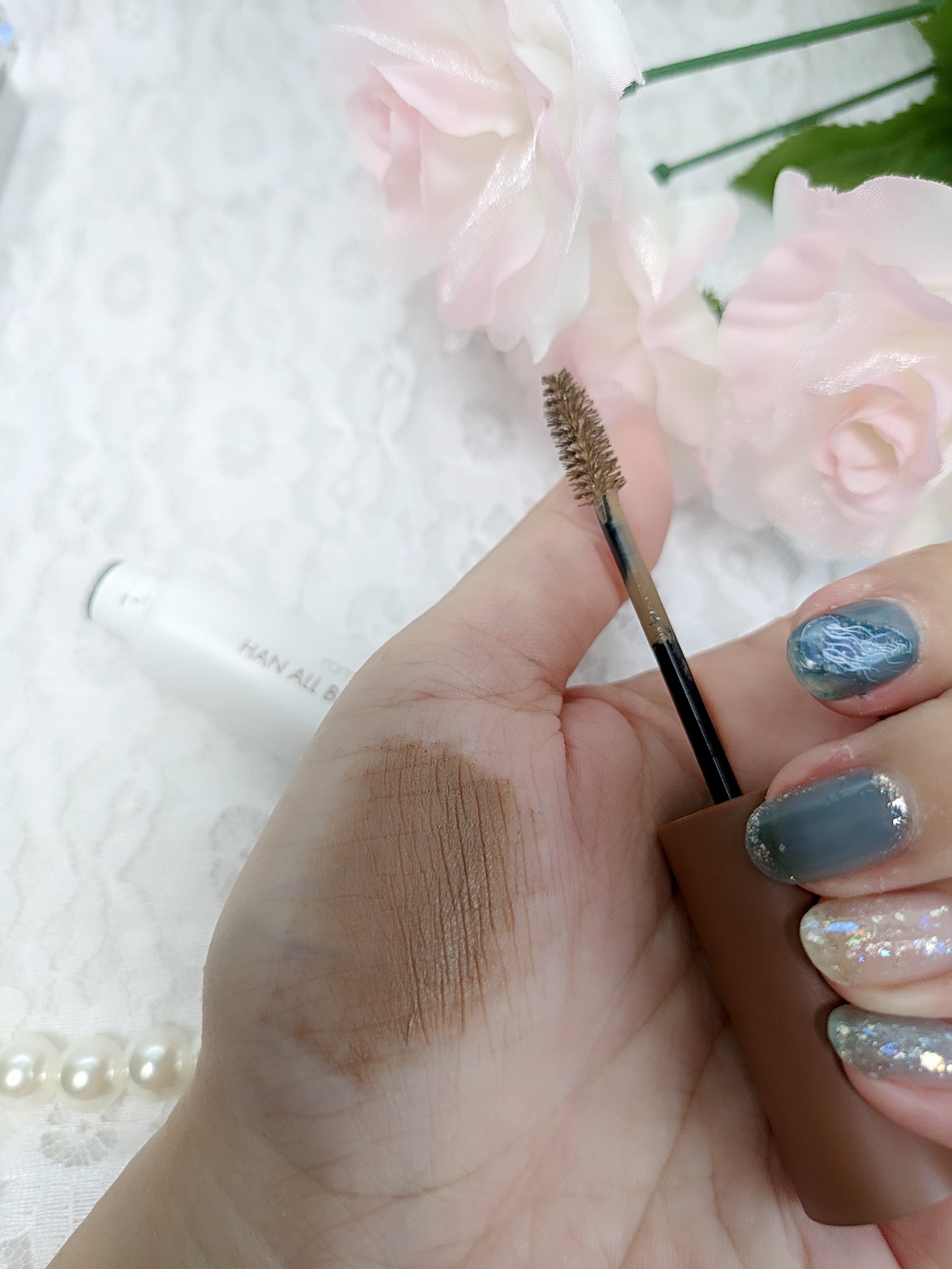 このアイブロウは今まで使った中で1番良かった! 絶妙なカラーで自然に眉の存在感をけしてくれます。 ハンオールブロウカラひと塗りで柔らかな存在感のない眉になって垢抜けます。 rom&ndのハンオールブロウカラは自眉自体を柔らかく見せてくれて、アイメイクも映えるし、眉の描き方がちょっと失敗してもなんとかなります😄