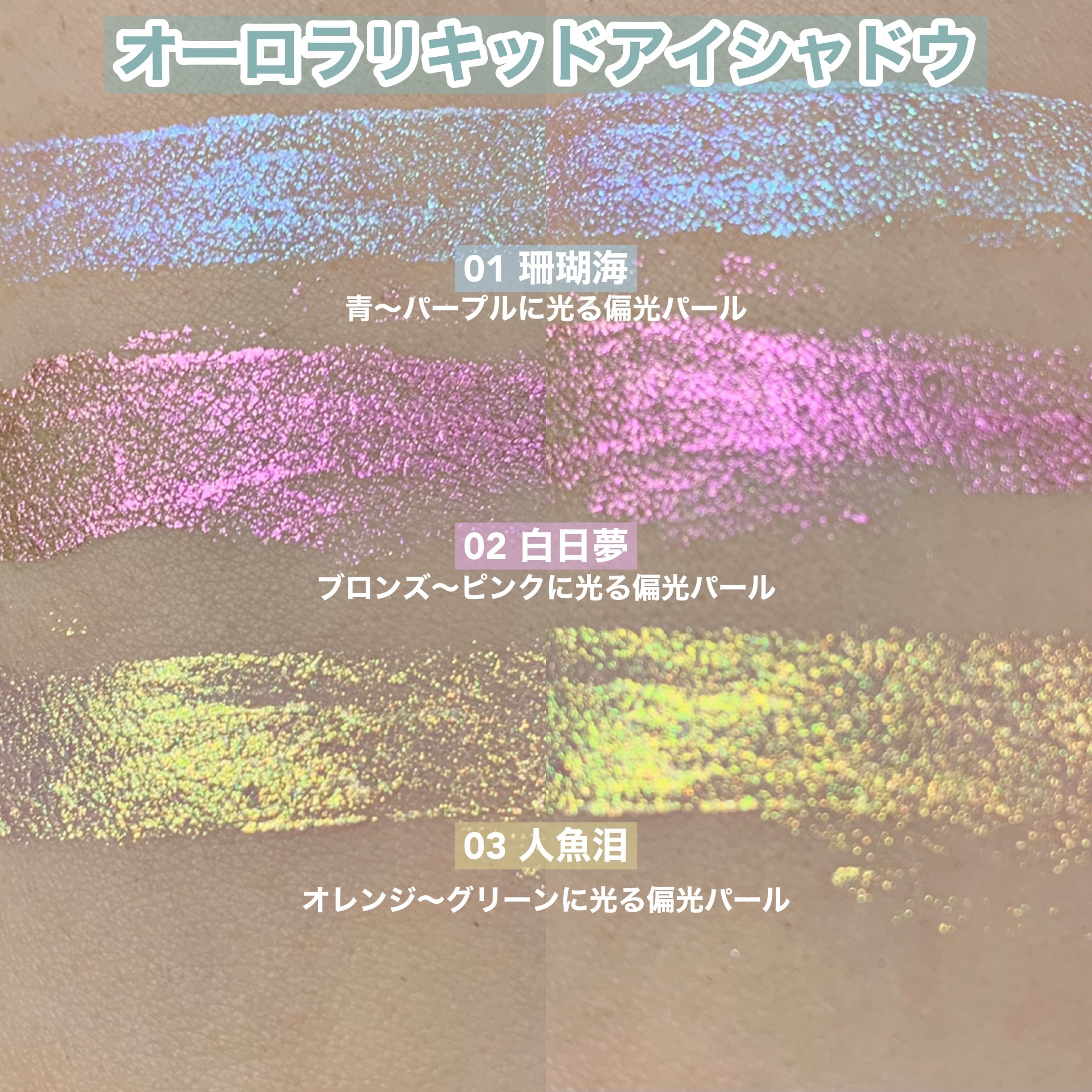 | リキッドアイシャドウランキング第2位 | 中に入っている偏光オーロララメの大きさがまた絶妙で、そのまま塗って使っても良いんだけど瞼にラメを乗せる感じで使ってもキラキラで可愛いよ | 詳細を見る | |