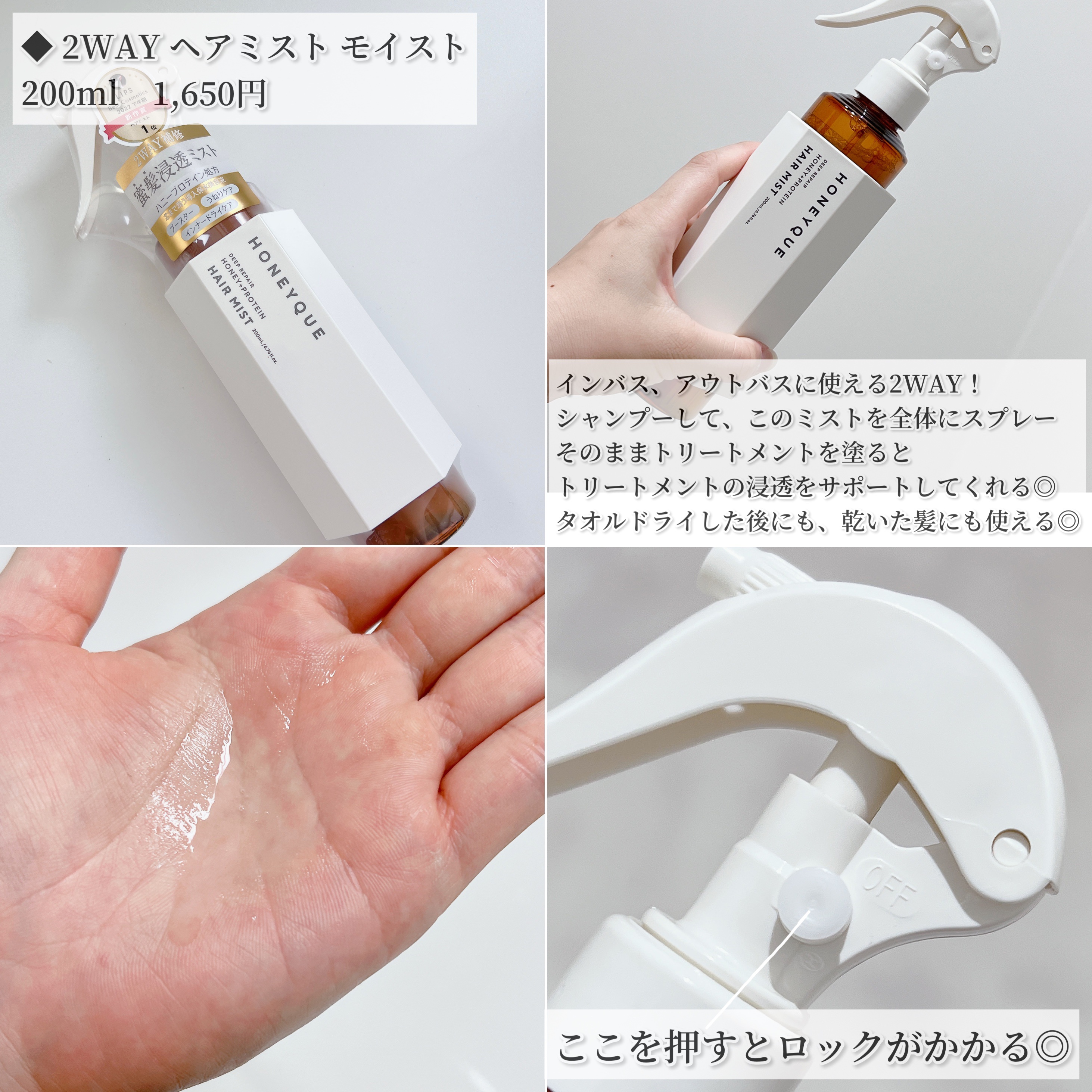 | ヘアケア・スタイリングランキング第56位 | ヘアミストなのできつすぎず、ふわ~っと優しいフローラルな匂いが漂います🍃 | 詳細を見る | |