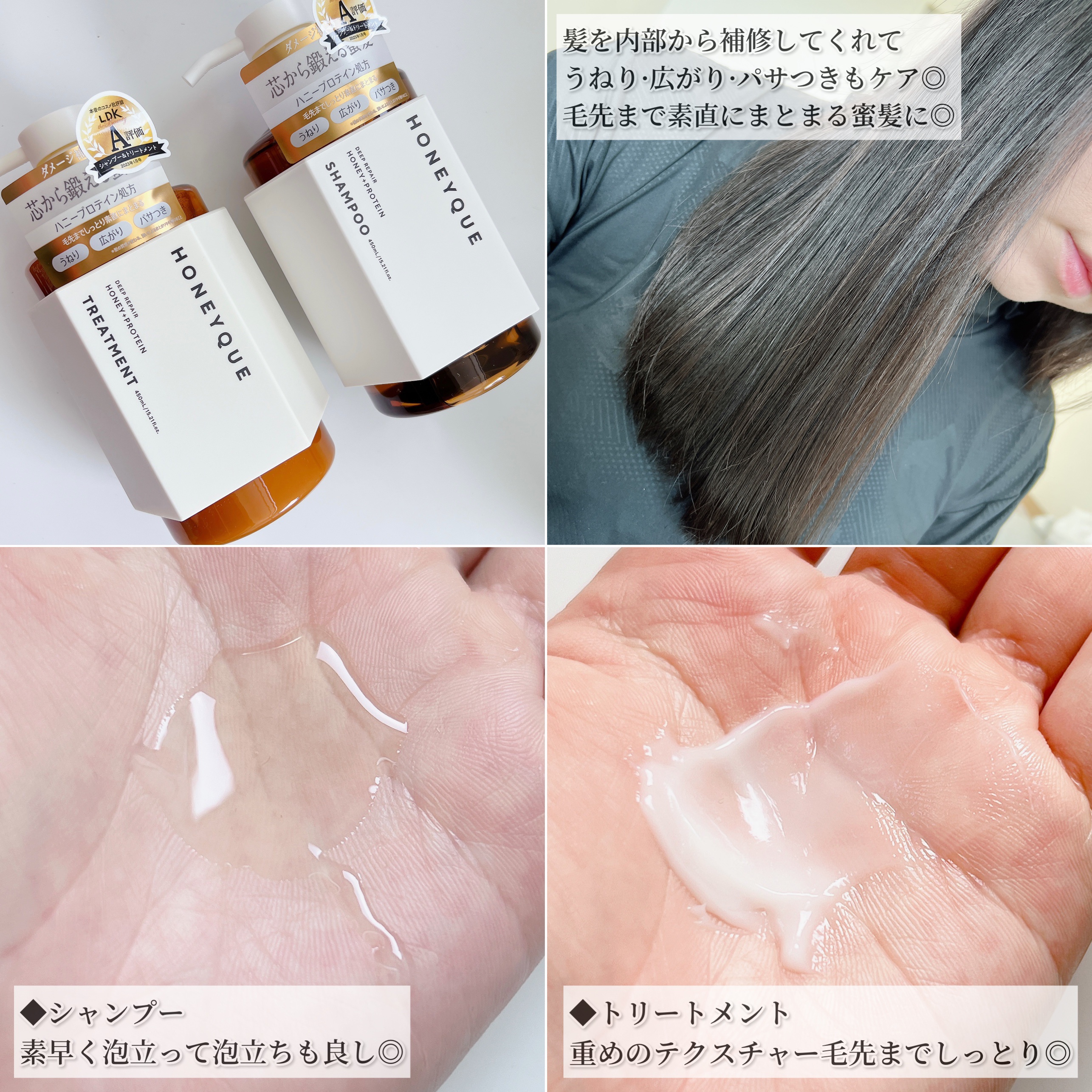 最近ハマってるのがハニークのシャントリ🍯 髪の芯から鍛えるハニープロテイン処方。 保水力に優れたオーガニックマヌカハニーやダメージを集中補修する「3つのプロテイン」が配合されていて髪の芯から集中補修できるの! 自宅でしっかりホームケアしたい方是非チェックしてみてね🌈