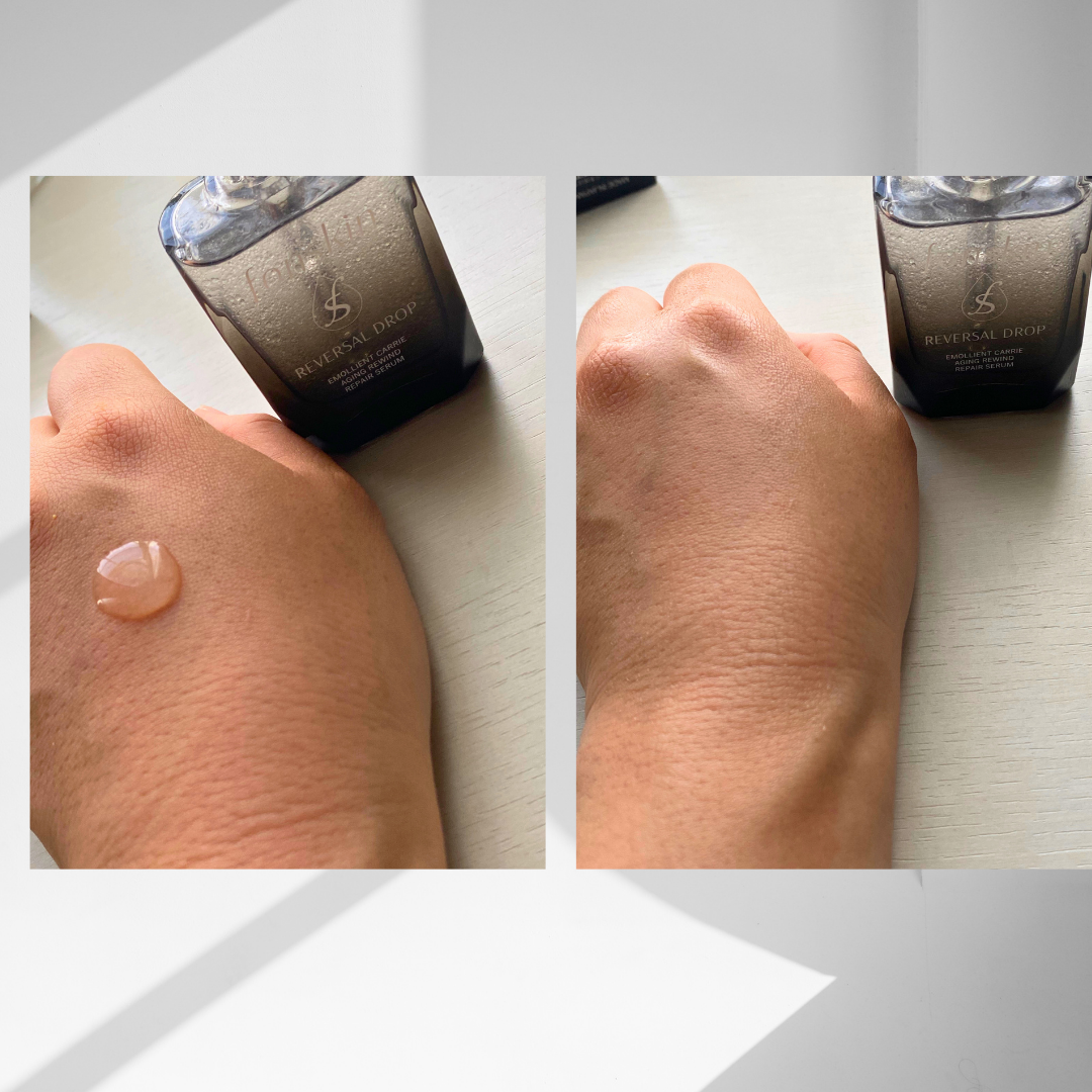 少しだけとろみのあるテクスチャーになっていますがベタつきが少なく 肌馴染みがいい感じだと思います。 人口香料&人口色素無添加というところ。 そのほかに、アンプル容器もこだわっていてスポイト容器だと最後まで使いきれないという悩みも解消してくれるような「使う人」のことを考えている商品なんです。