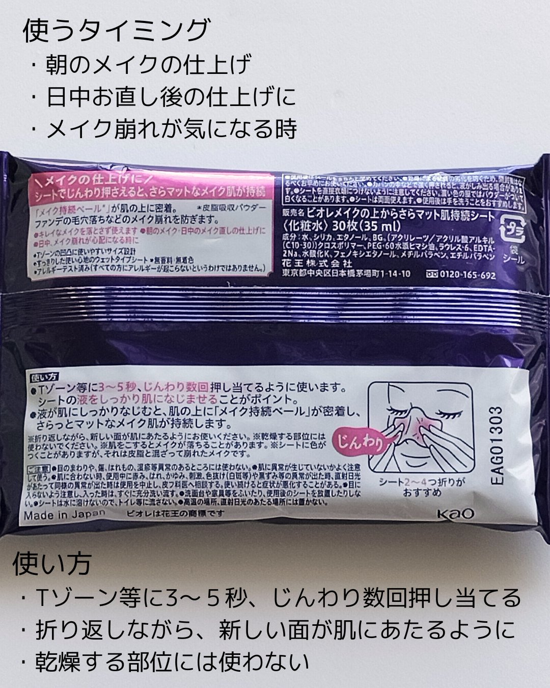 ビオレ ビオレメイクの上からうるピタ肌持続シート | 547円 |