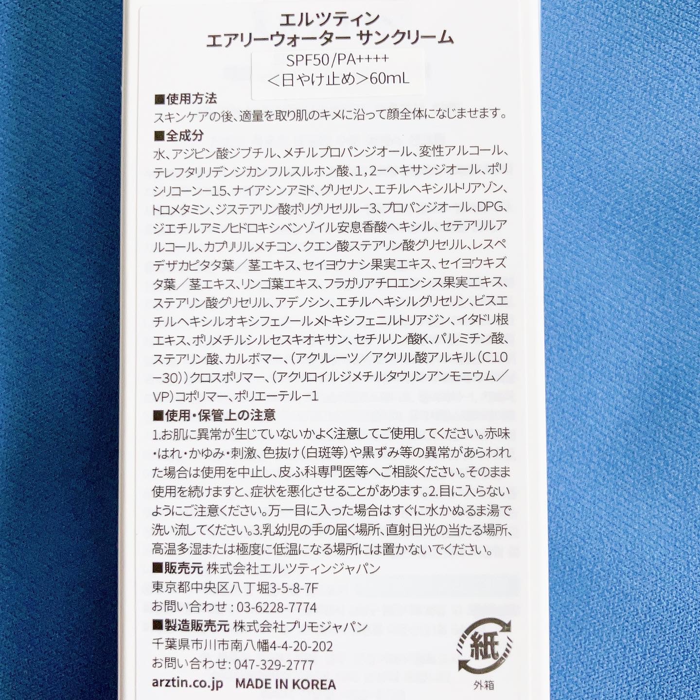 商品詳細情報エルツティン エアリーウォーターサンクリーム