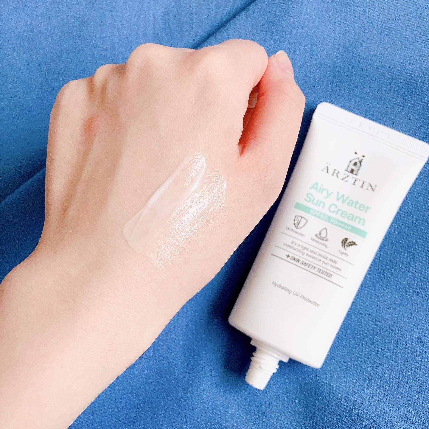 ꢭARZTINꢭ୨୧エアリーウォーターサンクリーム﹍。﹍。﹍。﹍。﹍。﹍。#PRARZTIN様のイベントキャンペーンで頂きましたみずみずしいテクスチャーで潤いがしっかりあり乾燥肌さん◎ベタつきなくスーッと馴染み香りはほんのり独特な匂い...