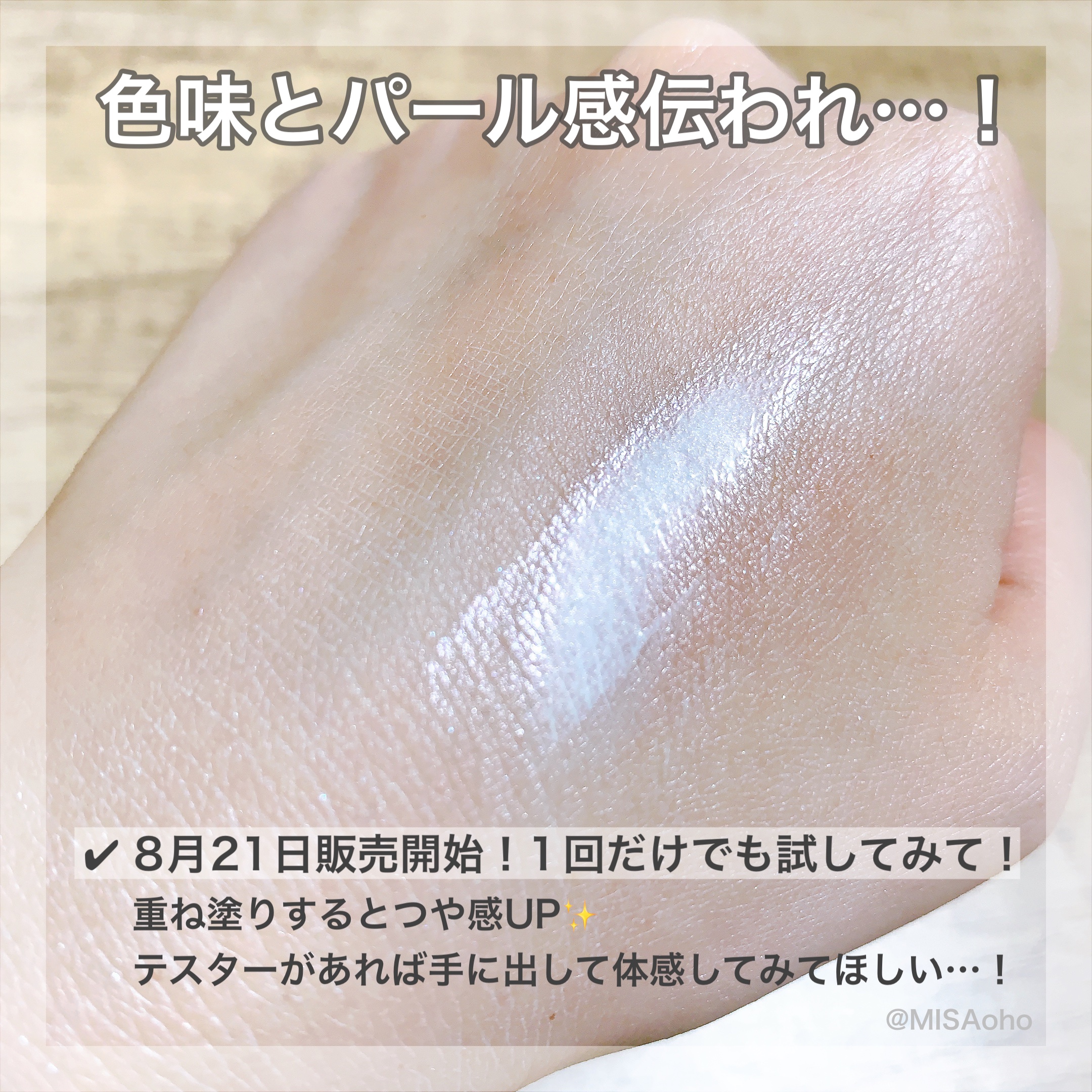 こちらは10月16日発売予定の新作です。 定番色4色と限定色が2色、各1650円で発売予定だそう📝 しっとりとケアをするティントタイプの商品で、ティッシュオフしてもカラーが残ってくれました! オイル配合でうるっとしたツヤが持続してくれて、秋冬にも使いやすそうに感じます🥰 シアーな発色で、何度か塗り重ねての調整がしやすいタイプでした! ただ、吹き付けてあるパールは表面だけなので使用すると見られなくなります…🤣 ♡BE370♡ コーラルな発色で、素の唇が綺麗に見えるようなカラー。 ♡PK870♡ 明るいピンク系でブルベさんにおすすめ! ♡RD470 限定♡ 深みのあるレッド系。 ♡PU170 限定♡ モーヴレッドでパールが美しい💎 秋冬のファッションによく合いそうな深みのあるカラーです!