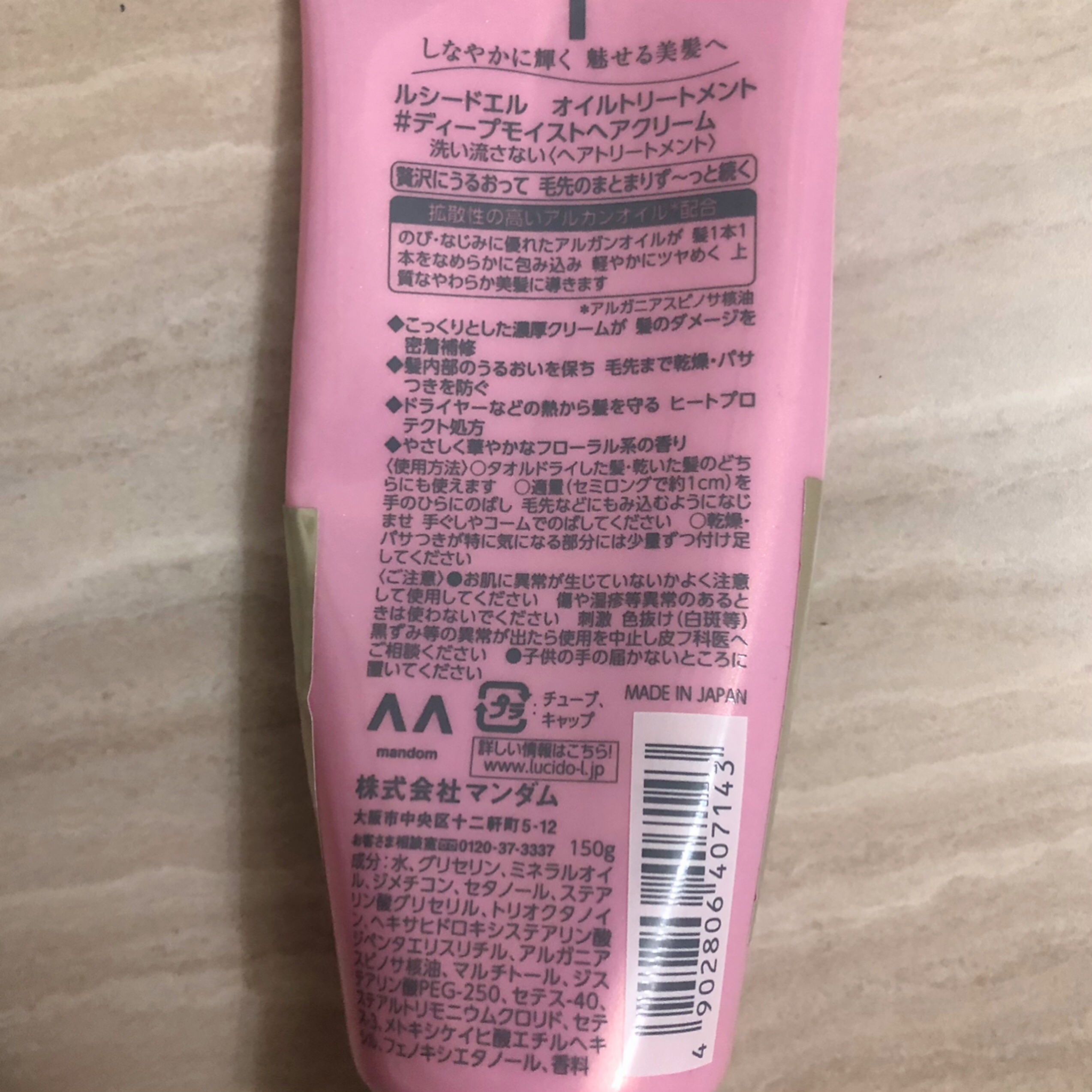 ルシードエルオイルトリートメント#ディープモイストヘアクリーム700円くらい(西友価格)一月ほど前に髪を切って、ついでにケアしようと購入。何もわかってないけど「アルガンオイル」よさそう!という単純思考。今までは椿油使用。でも私の調整が下手で、...