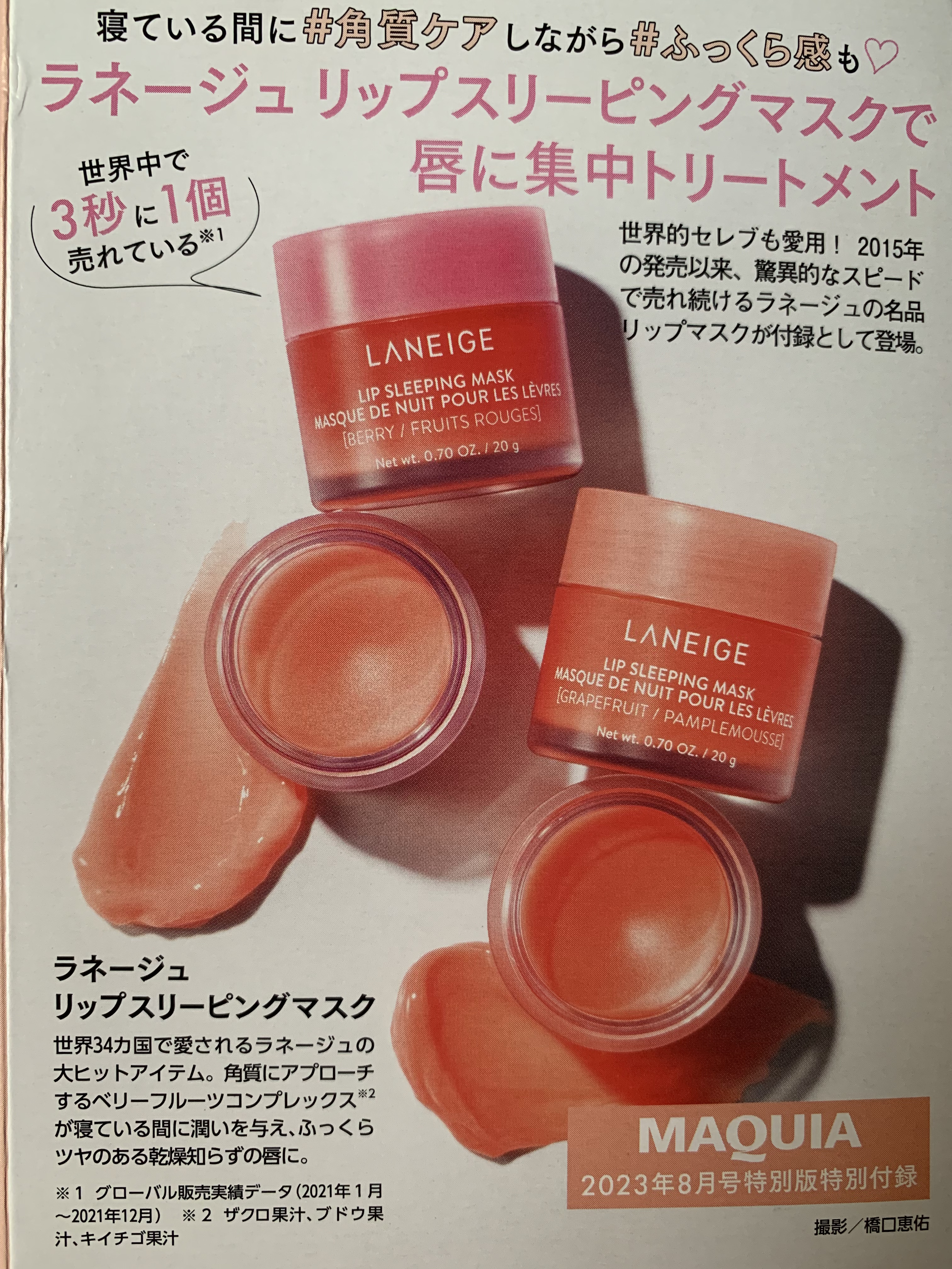 - 寝ている間にケアしてふっくらぷるぷるにうるおった唇へ。 2015年の初代発売以降、世界で2秒に1個売れている*¹LANEIGE大ヒットシリーズ *¹ 2024年グローバル販売実績 1.角質にアプローチするBerryFruitComplex (ベリーフルーツコンプレックス)*²が、 寝ている間に気になる乾燥や角質にうるおいを与え、つやのあるふっくらとうるおった唇に仕上げます。 *²ザクロ果実エキス、ブドウ果実エキス、ラズベリー果実エキス 2.ココナッツオイル(ヤシ油)を配合で、うるおいをあたえ睡眠中の乾燥を防ぎます。 3.今夜はどんな気分?5つのフレーバーから選べるワクワク感。 ■テクスチャー:やさしく馴染むなめらかなバームタイプ ■アレルギーテスト済み*³ *³全ての方にアレルギーが起こらないということではありません。 ■使用方法 寝る前に唇にたっぷり塗り、そのままお休みください。 翌朝、軽くティッシュオフします。付属のスパチュラで塗ることで、より唇の角質に馴染みやすくなります。 日中のリップトリートメントにも使用できます。