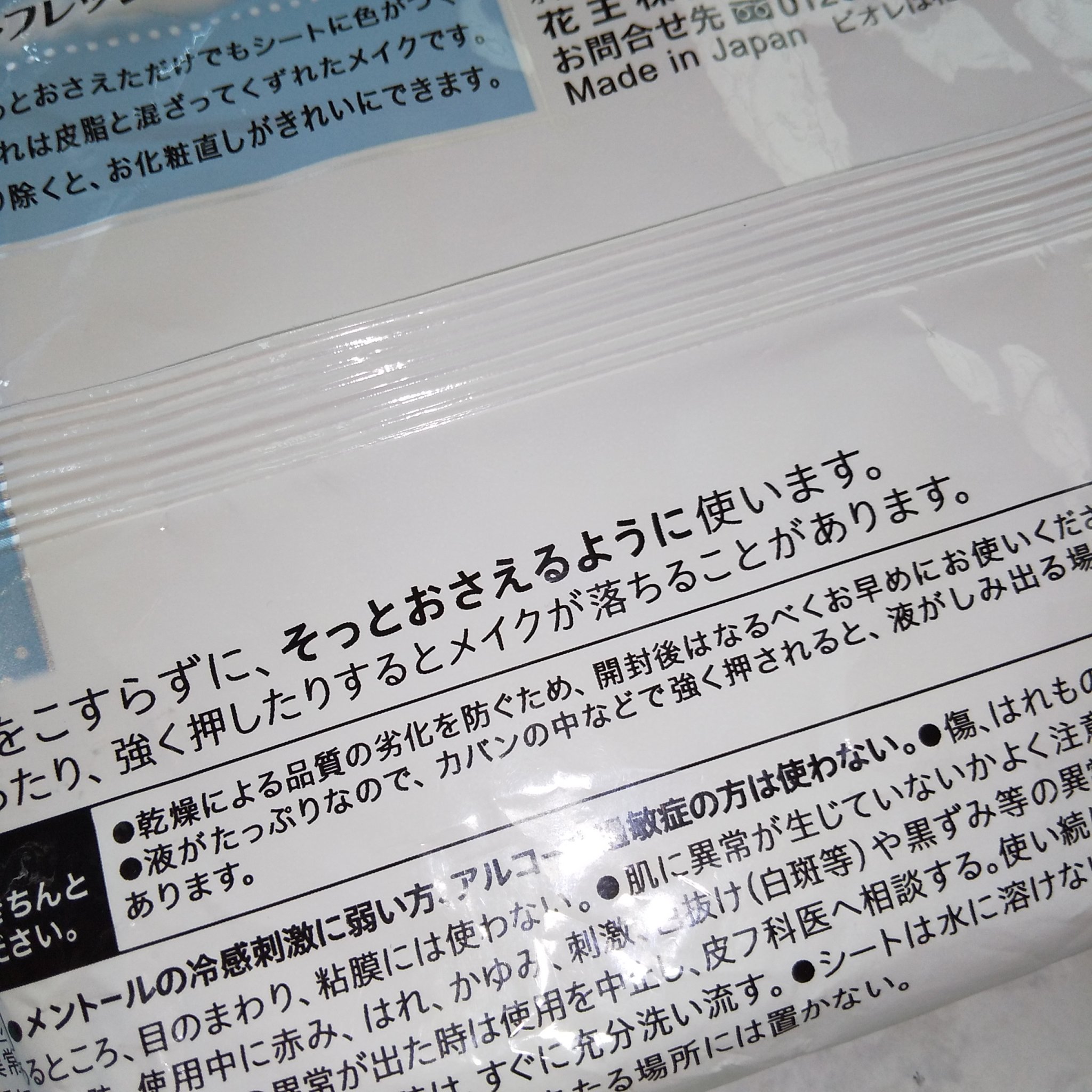 ビオレ メイクの上からリフレッシュシート うるおいしっとりタイプ |