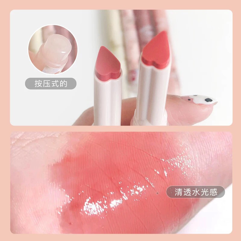 これ一本でちゅるちゅるの唇になれるリップ! ちゅるちゅるさがまじで他の比にならないレベルです❤️🔥❤️🔥 溶けるように唇に馴染んでくれておまけに保湿力もある! リップの型がハート型なのもめちゃくちゃかわいいし、 何より安い!!わたしはQoo10で買いましたが 送料込みでも1000円もしませんでした🎀🌟 ただティッシュオフするだけですぐに落ちちゃうので 色持ちはまじで良くないと思いました😿