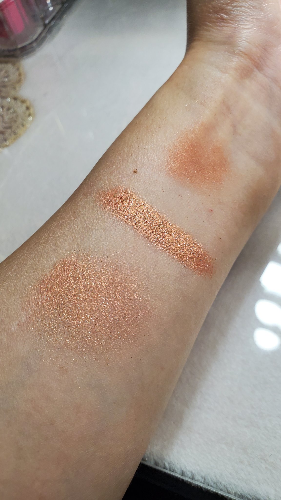右上の淡いカラーに左上のラメを重ねました😊 さらに右下オレンジを重ねて、ブラウンをライナーにつかいました✨️ 2個目は、電話予約ができたのでバレンタイン日発売のパレットをGETする予定です🫶
