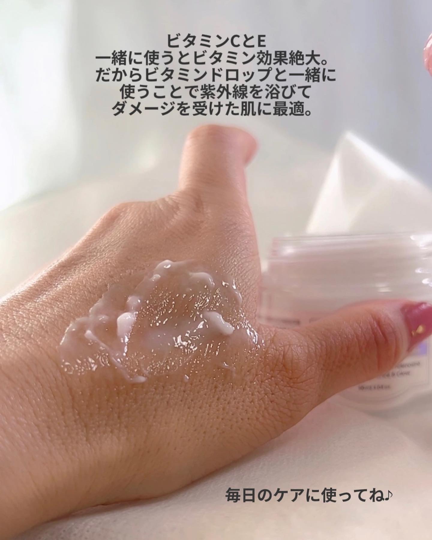 ビタミンドロップ現品にビタミンEマスクのミニサイズが付いた“お手頃価格でお試しできるセット”だよ🤍🫧 フレッシュリージュースドビタミンドロップはオイルっぽい厚みのあるテクスチャーで、塗った時は浸透した証にほんのり暖かく🔥 フレッシュリージュースドビタミンEマスクはまるで杏仁豆腐!ぷるんっとしたテクスチャーで見た目も香りも杏仁豆腐で楽しい使用感🤤