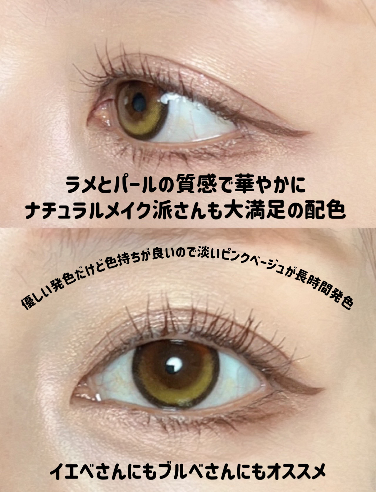 パール感がとっても綺麗で涙袋に使うとぷっくりして見えます! 淡めベージュ系パレット!全体的に明るさのあるパレットでこれのみで仕上げるとメタリックさも感じる仕上がり! しっとりとした粉質で淡めカラーだけど発色もしっかり🥹