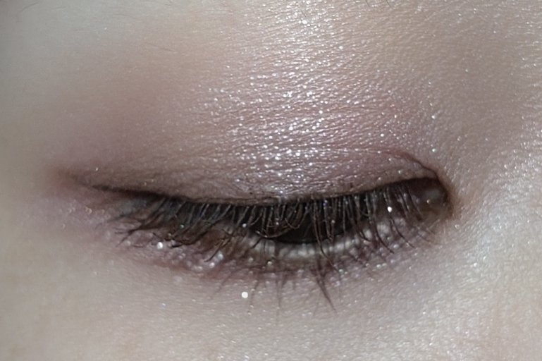 ベースは少しブラウンが混ざったようなくすみピンクという感じの色味です💡もちろん単体でも使えますが、淡めの発色なので手持ちのアイシャドウと色々組み合わせても良さそうです🙆 青の偏光ラメがぎっしりと入っているのですが、そこまでラメが大きすぎず繊細なラメ感なのでギラギラしすぎないところが良いなと思いました☺️ ただ実際使用してみて結構ラメ落ちするかなーという印象だったので、アイシャドウベースは塗った方が良いと思います🤔💡 ラメ感が本当にとってもかわいいので、ラメ好きの方は是非チェックしてみてください✨