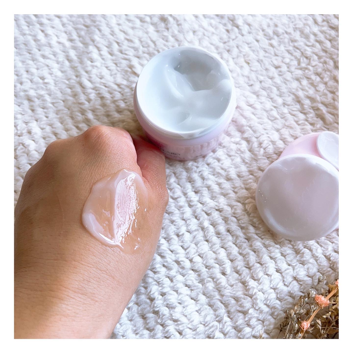 優しいオフホワイトのパッケージが見てるだけで嬉しい気持ちに。 中の化粧液は、ほんのーりトロミがあって柔らかいテクスチャー。 効果的な使い方は、1度顔全体に伸ばしたあと、さらに重ね付けすることなんだそう。