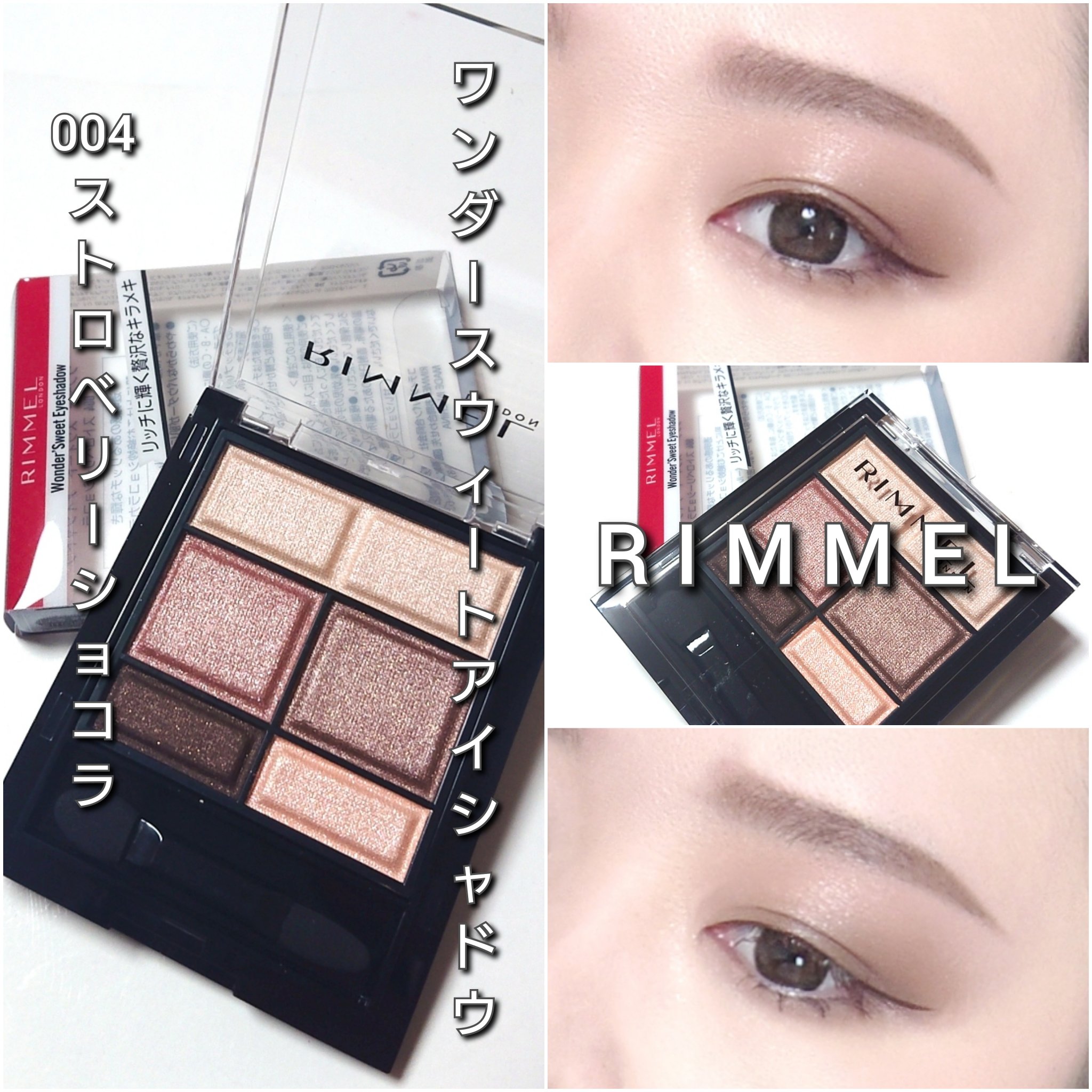 本日のアイシャドウ♡#リンメル#ワンダースウィートアイシャドウ004ヒロイン級の可愛らしさストロベリーショコラ大好きなリンメル!!ワンダースウィートアイシャドウはとにかく香りが好き❤️ほんとは、旧パケのがもっと好き❤️でもやっぱりリンメルのア...