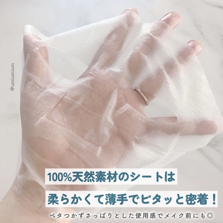 | 保湿に特化しているので乾燥肌さんにおすすめ。でこぼこのシートマスクの質感もピタッと密着してくれて感動。 | 詳細を見る |