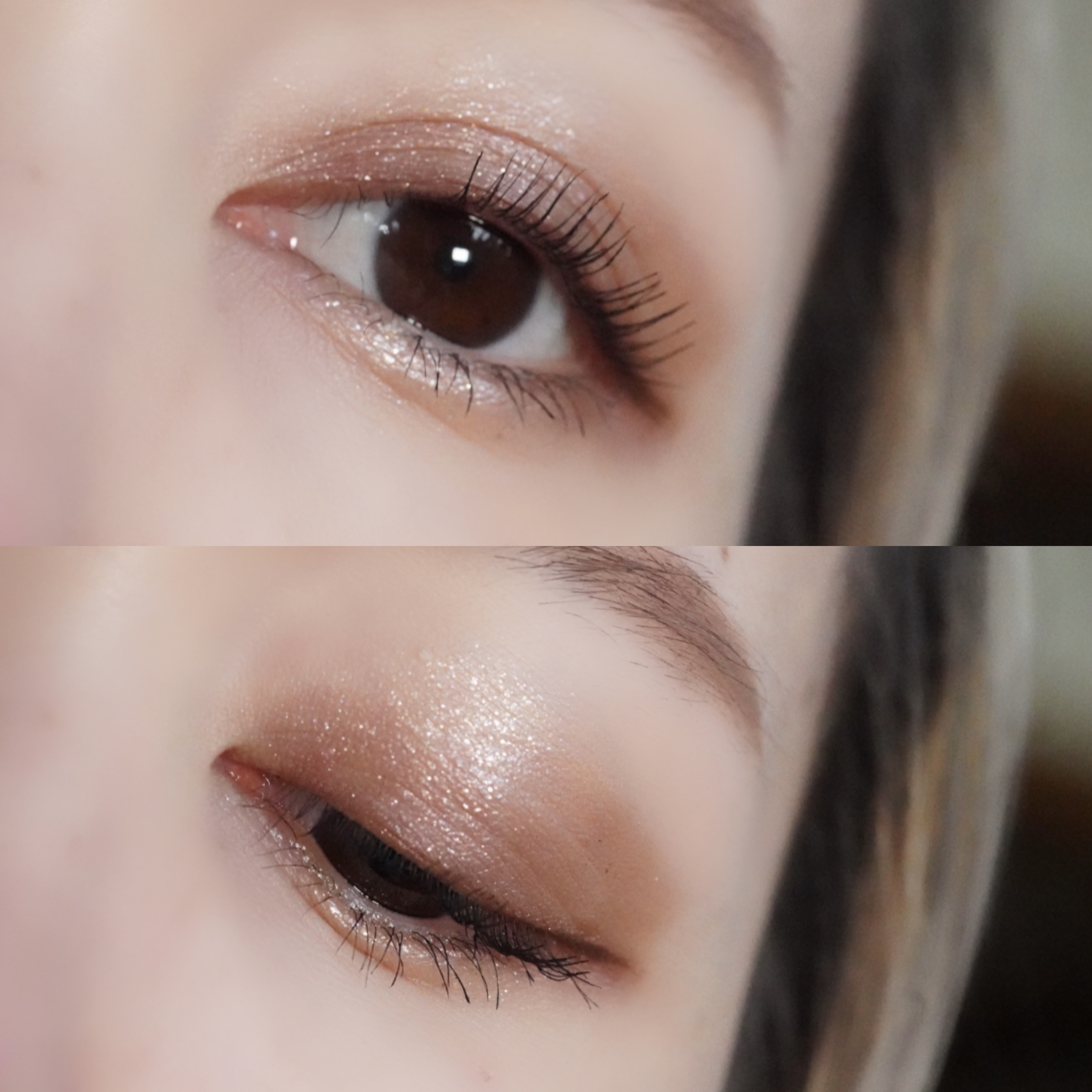よくパレットのなかで明るいカラーをベースにまぶたに広く塗ることが多いのですが、パール感のあるカラーを避ける🙆♀️! パール感たっぷりの明るいカラーは涙袋に使うぐらい光を集めてぷっくり見せてくれるので、まぶたに広く使うと腫れぼったく見えがち😓 目元を明るくみせてくれたり、次に使うアイシャドウをぼかしやすくしてくれるけど、すっ飛ばしてメインのカラーを塗っちゃう✊🏻❤️🔥 涙袋にはたっぷり塗ってぷっくり見せる🙆♀️💕 シルキースフレアイズのマットタイプはすごく優れているな〜と感じました☺️💗 赤やオレンジなどは、入れすぎると腫れぼったく見えやすいので、見せたいカラーは下まぶた目尻にのせて色をたのしむ♡♡ パール感なしの透けマットだけじゃ物足りない… そう感じさせない華やかなラメが左上に入っているので黒目上と涙袋にのせるとすごく可愛い仕上がりに😍! 厄介な左右差のお陰でマットアイシャドウが好きになりました😌💕