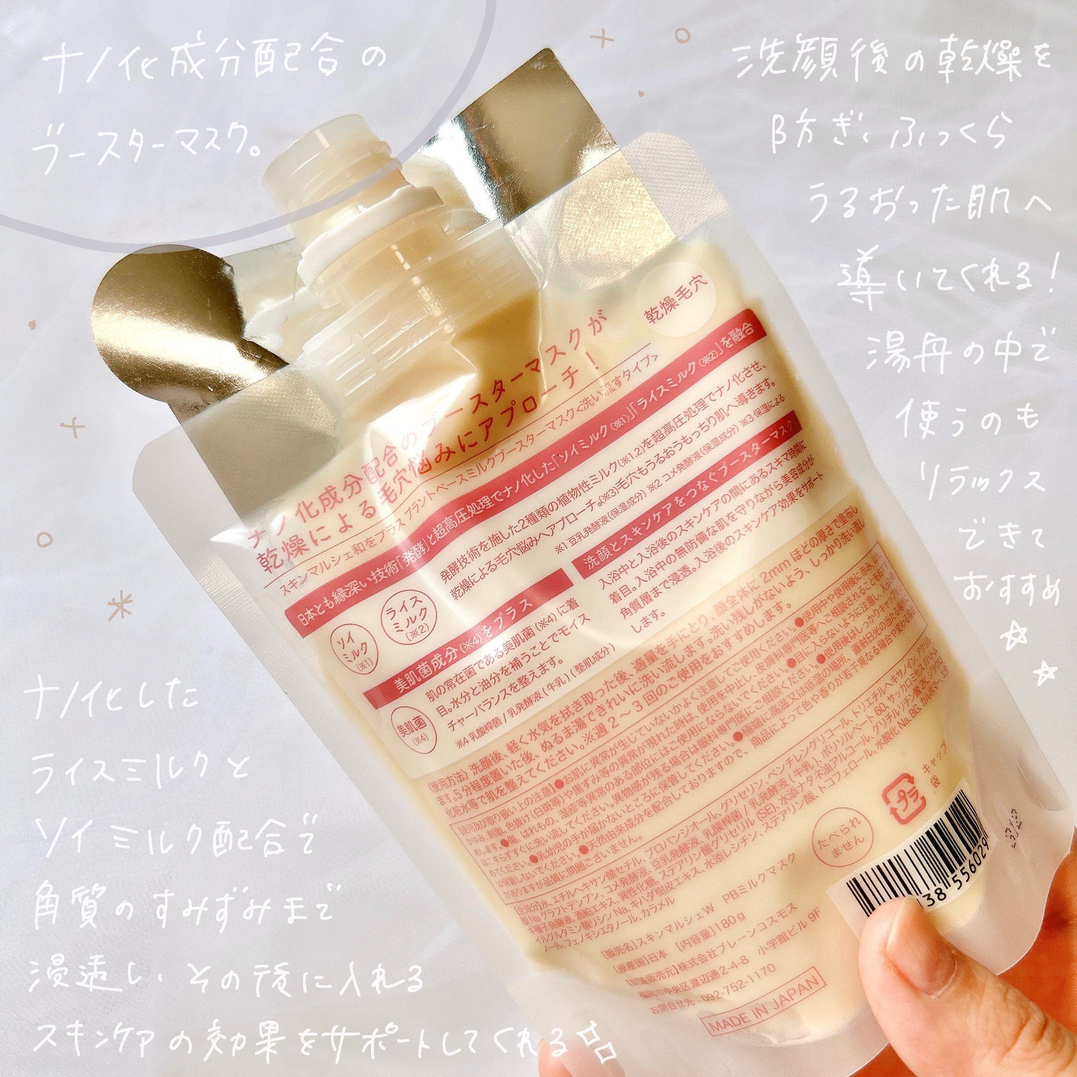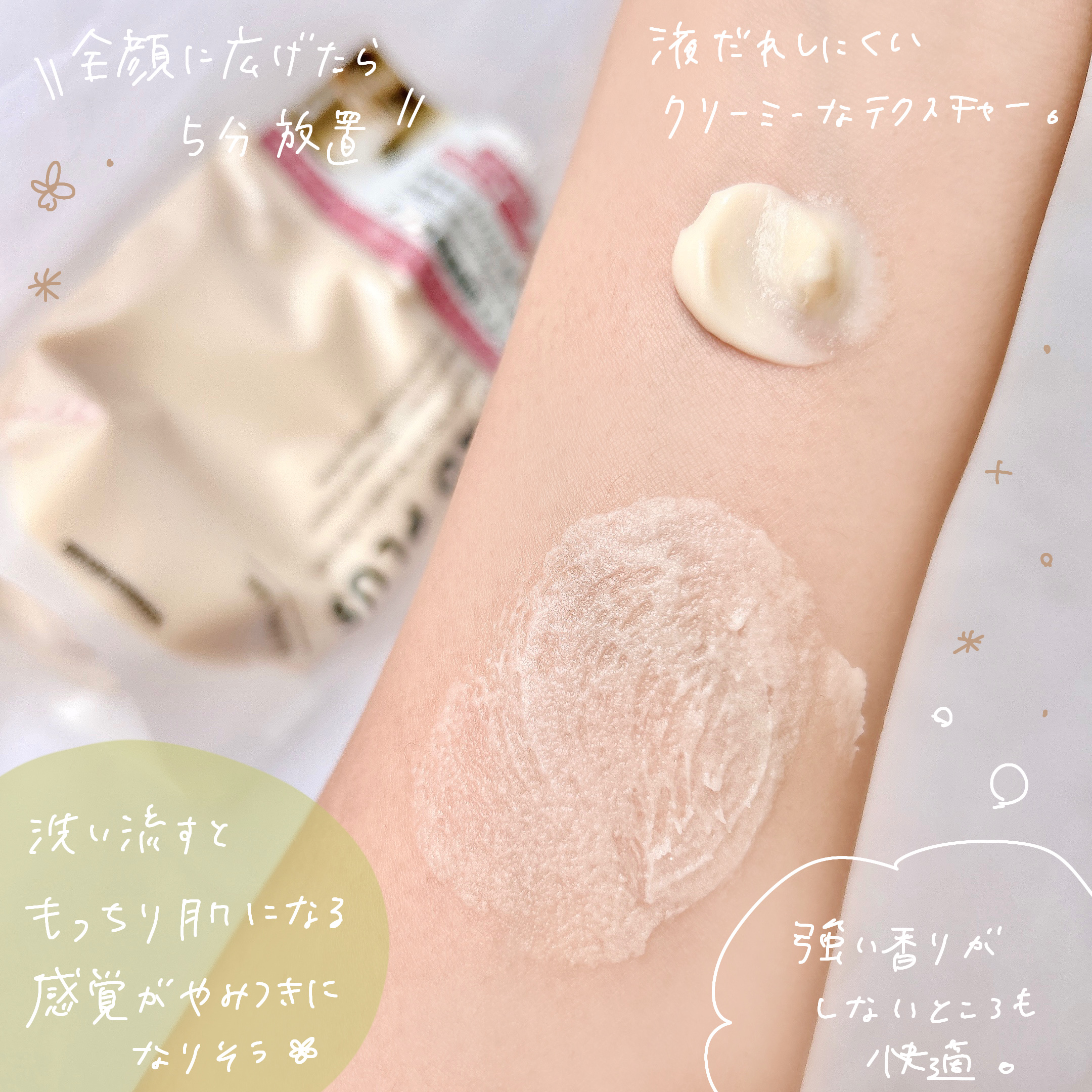 - 吸い付くようなもっちり肌へ!洗顔後にプラスして使用する洗い流すタイプのマスクです。お風呂上がりのスキンケア効果をサポートするナノ発酵植物性ミルク*1が角質層のすみずみまで浸透。カサつき肌や乾燥毛穴、肌のハリにアプローチし乾燥により毛穴が気になる肌もうるおうもっちり肌へ整えます。 *1.超高圧処理を施した豆乳発酵液(保湿成分)、コメ発酵液(保湿成分)
